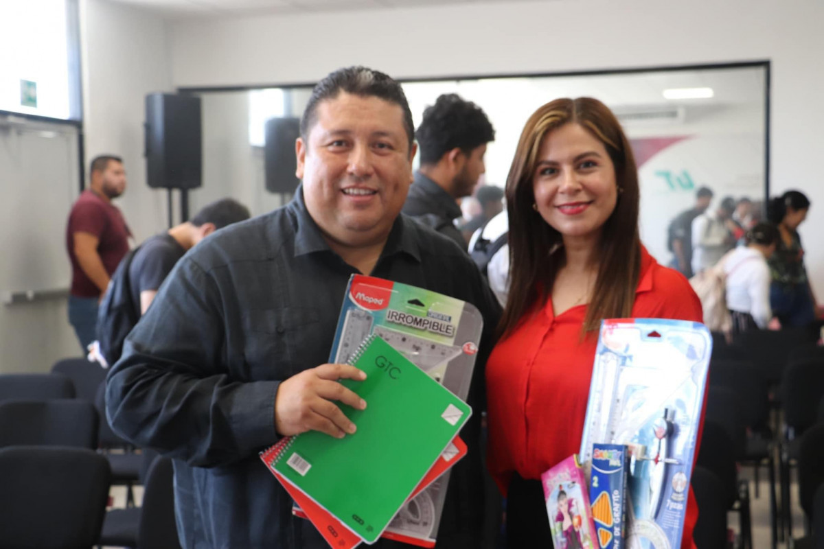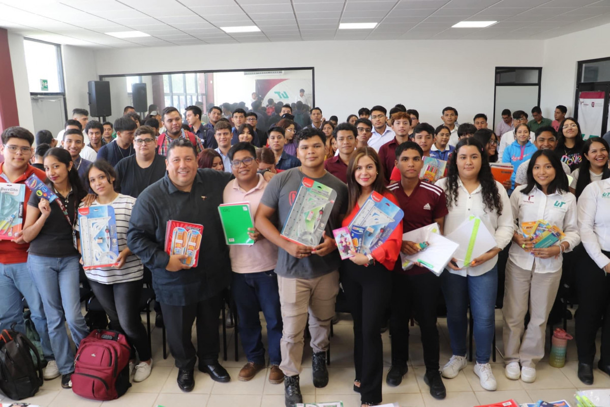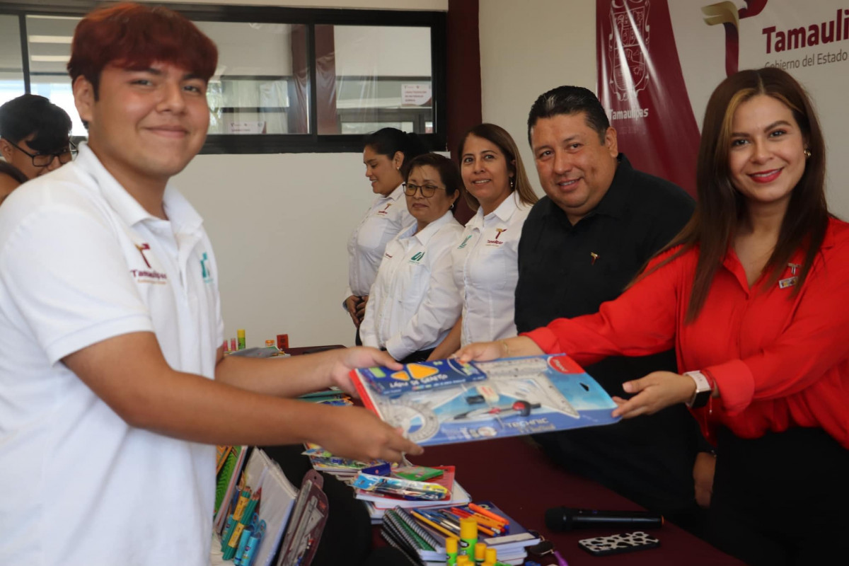 Alumnas y alumnos de nuestra Universidad Tecnológica de Altamira entregaron material recabado para la campaña de colecta de útiles escolares “Aprendiendo con Amor”