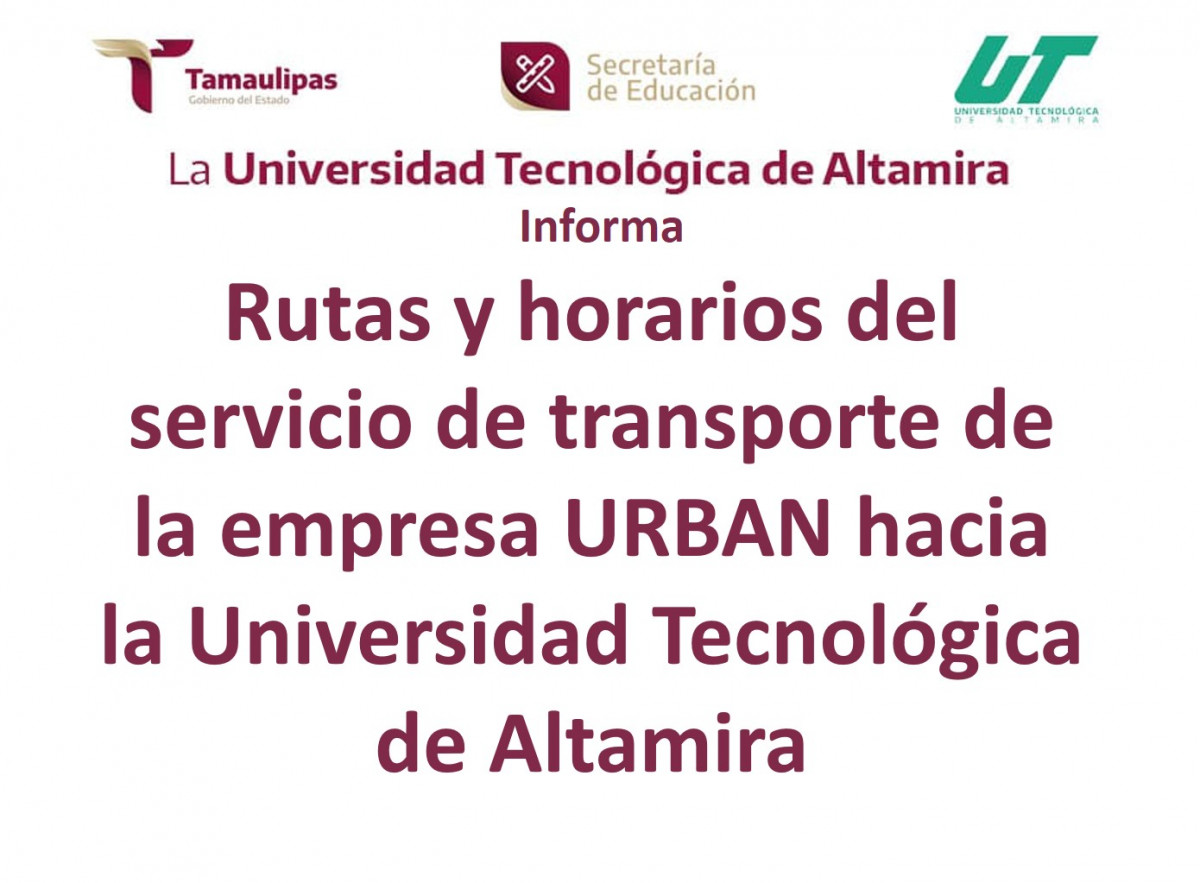 Rutas y horarios del servicio de transporte de la empresa URBAN hacia la Universidad Tecnológica de Altamira: