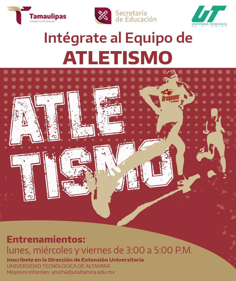 La Universidad Tecnológica de Altamira te invita a formar parte de sus Equipos de Ajedrez, Atletismo, Futbol (Femenil y Varonil), Voleibol (Femenil y Varonil), Basquetbol (Femenil y Varonil), Béisbol y Tae Kwon Do. Inscríbete en la Dirección de Extensión Universitaria. ¡Te esperamos! ![]()