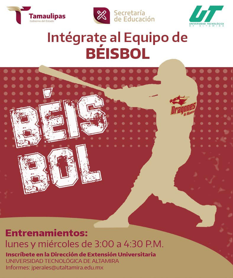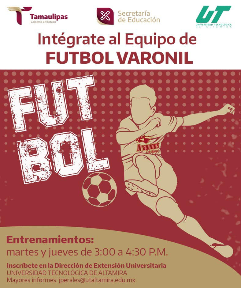 La Universidad Tecnológica de Altamira te invita a formar parte de sus Equipos de Ajedrez, Atletismo, Futbol (Femenil y Varonil), Voleibol (Femenil y Varonil), Basquetbol (Femenil y Varonil), Béisbol y Tae Kwon Do. Inscríbete en la Dirección de Extensión Universitaria. ¡Te esperamos! ![]()
