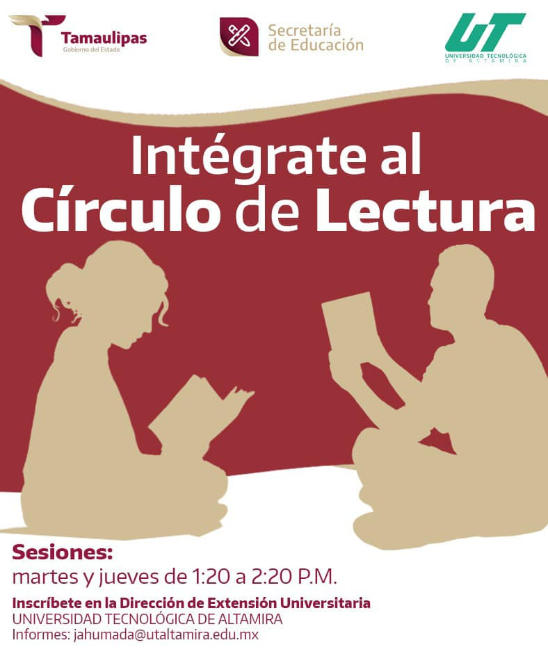 Intégrate al CÍRCULO DE LECTURA de nuestra Universidad Tecnológica de Altamira. Reunión informativa este jueves 12 de octubre a las 13:20 en el Auditorio del Edificio N. ¡Te esperamos!