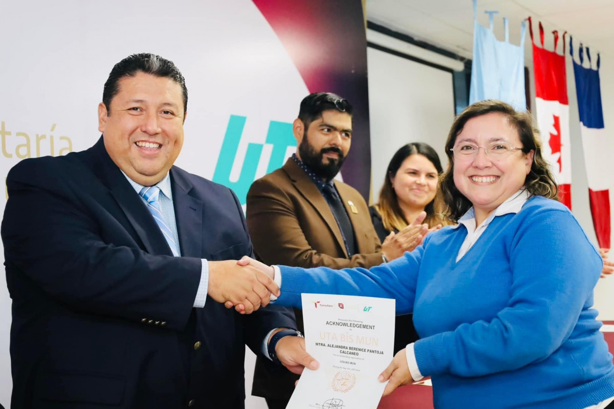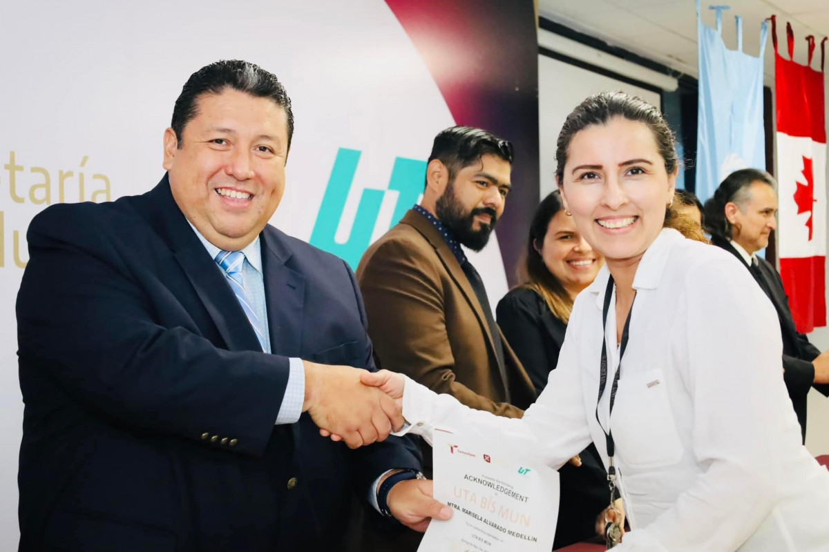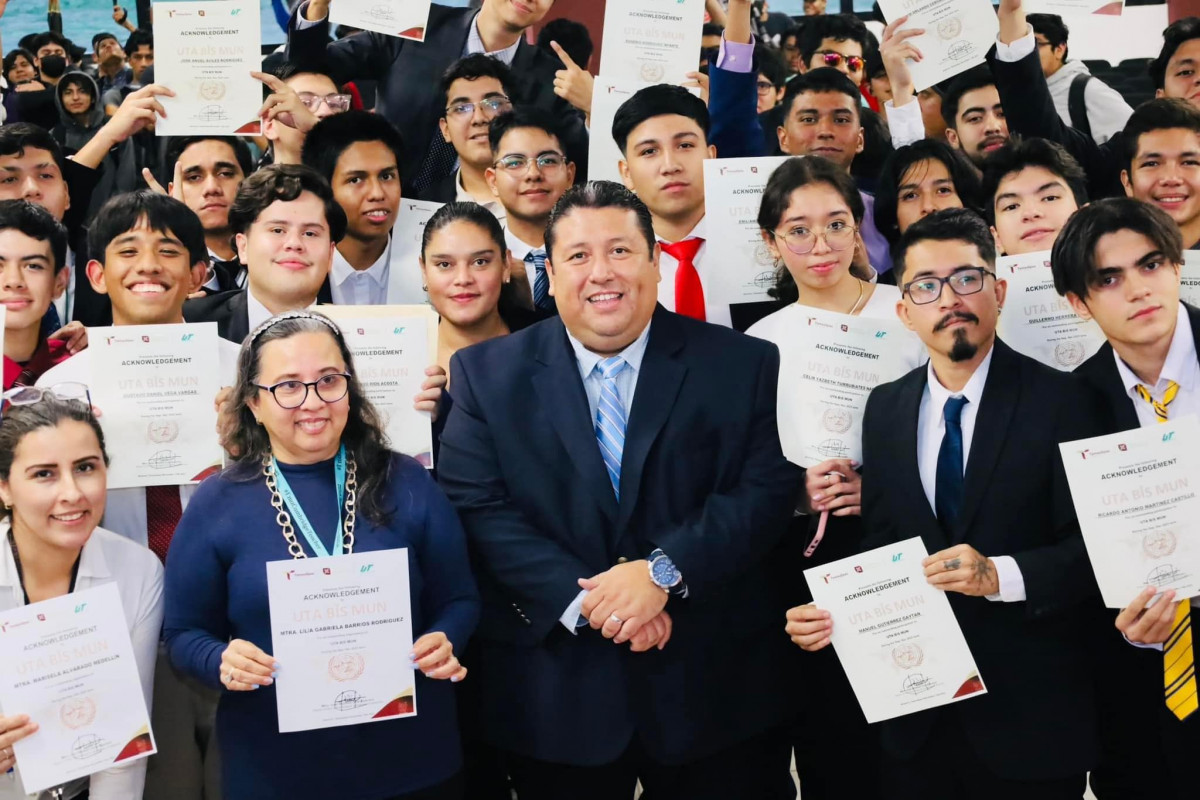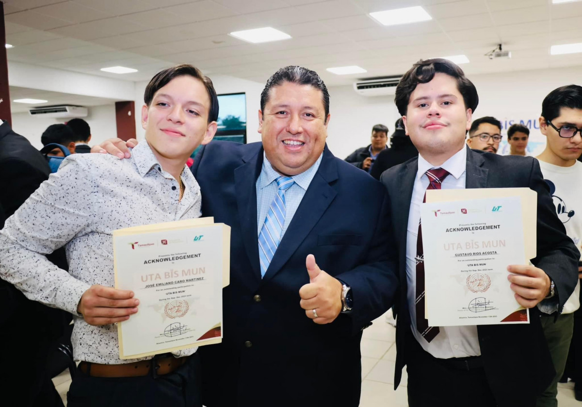 Felicitamos a las alumnas y alumnos de nuestra querida Universidad Tecnológica de Altamira por la exitosa realización de la simulación de una sesión de la Organización de las Naciones Unidas (ONU) a través de “UTA-BIS-MUN”, en donde, con la presencia de nuestro rector, el Mtro. Juan Dionisio Cruz Guerrero, pusieron en práctica el idioma inglés y francés, investigando y desarrollando temas de importancia social.