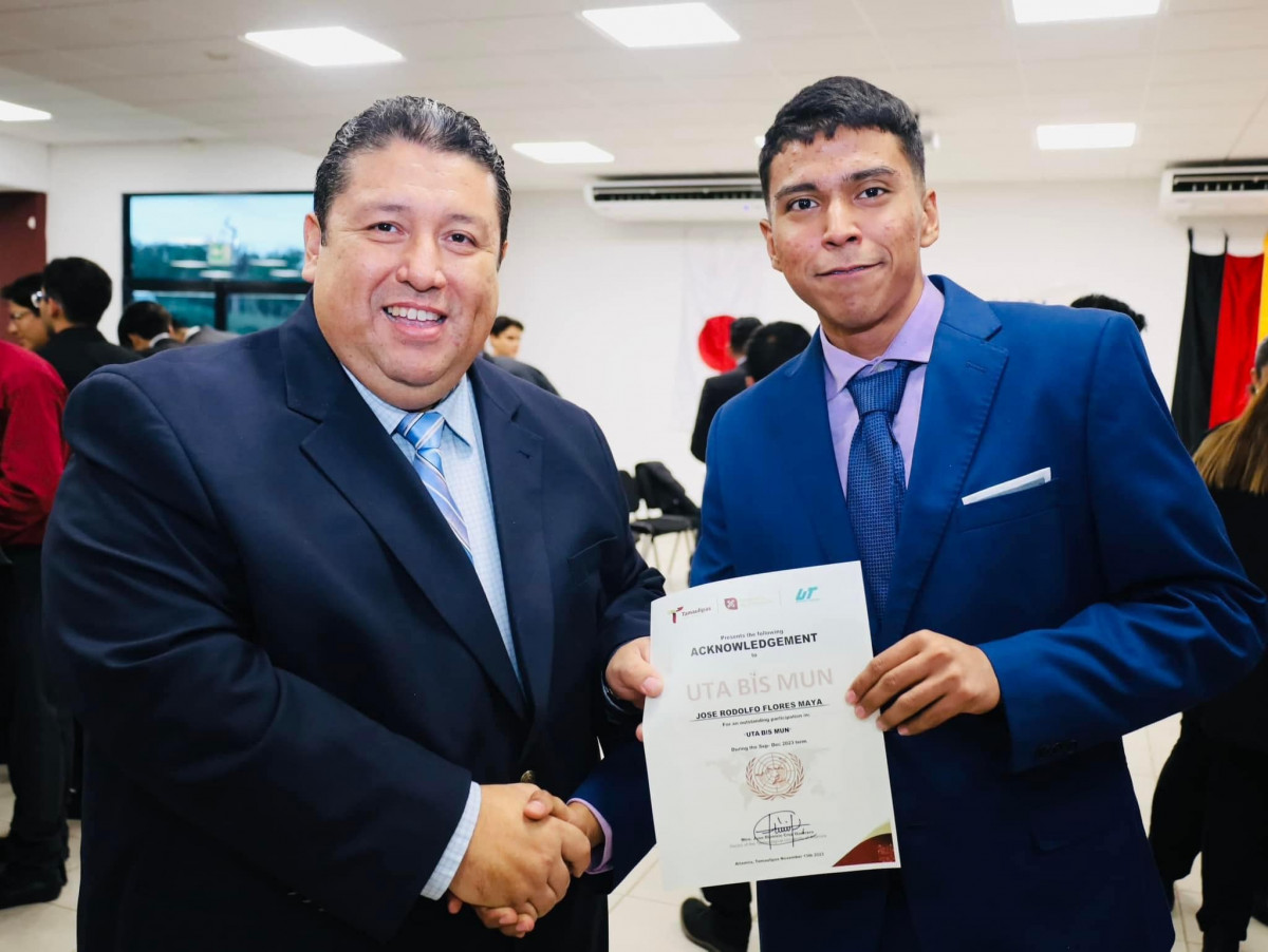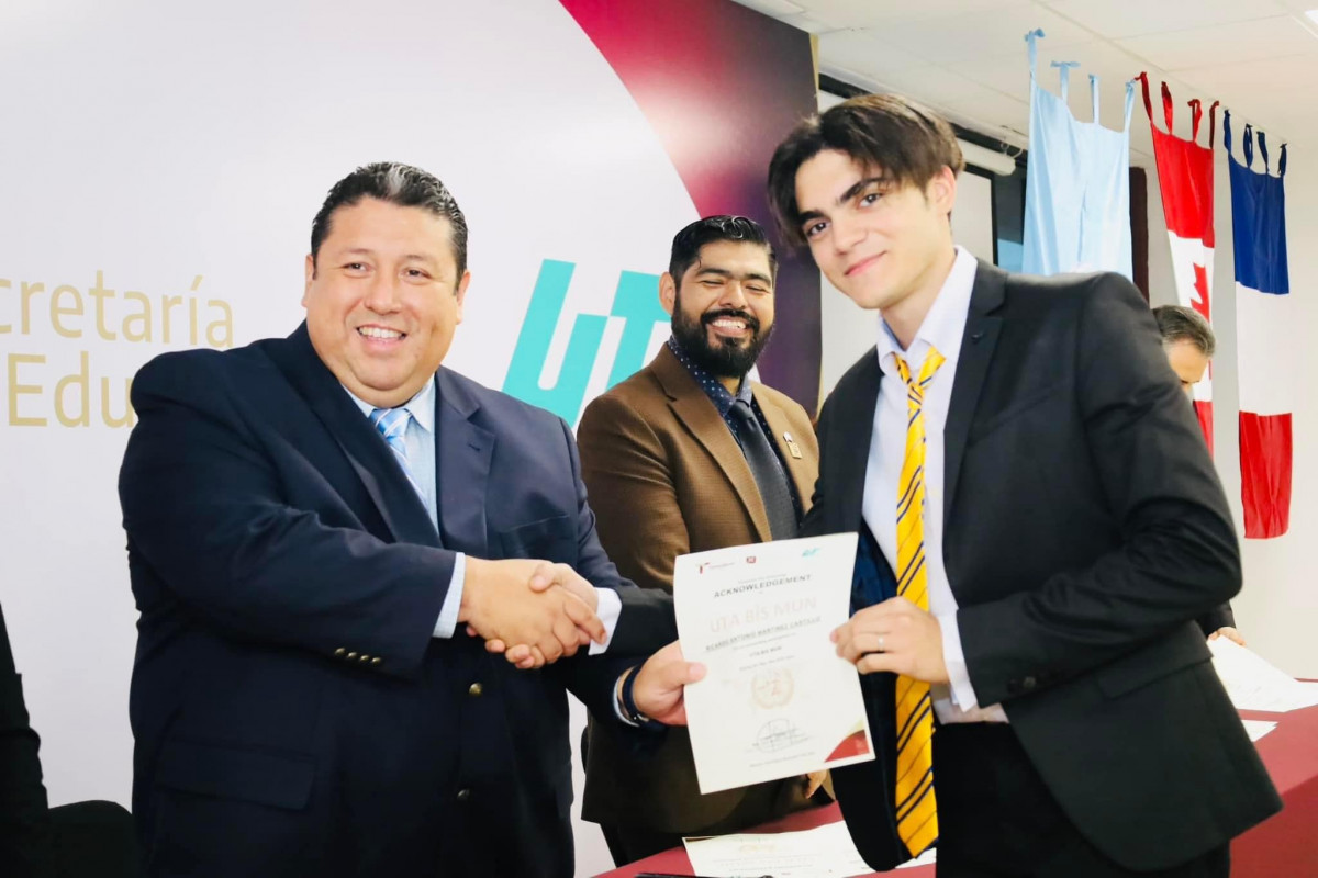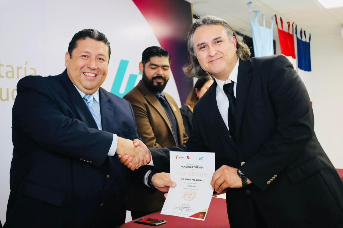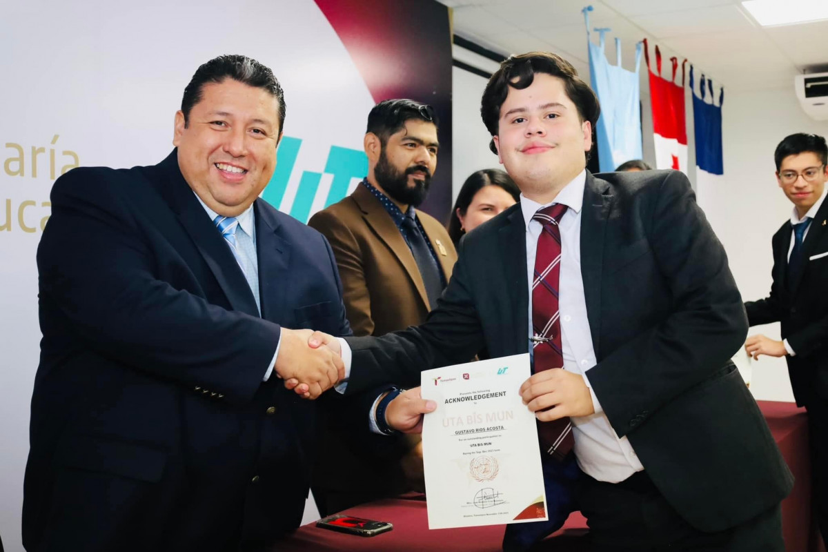 Felicitamos a las alumnas y alumnos de nuestra querida Universidad Tecnológica de Altamira por la exitosa realización de la simulación de una sesión de la Organización de las Naciones Unidas (ONU) a través de “UTA-BIS-MUN”, en donde, con la presencia de nuestro rector, el Mtro. Juan Dionisio Cruz Guerrero, pusieron en práctica el idioma inglés y francés, investigando y desarrollando temas de importancia social.