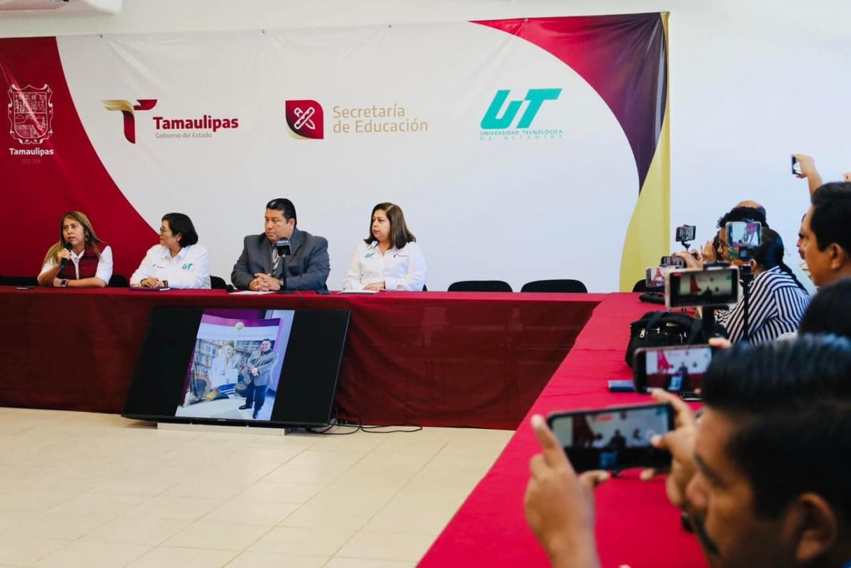 Acompañado de personal académico y estudiantil, el pasado Viernes 17 de noviembre por la mañana nuestro rector, el Mtro. Juan Dionisio Cruz Guerrero encabezó una rueda de prensa con la finalidad de difundir los avances en temas de colaboración internacional, ingreso de personal académico al SNII, posgrado y actividades deportivas. Agradecemos a los medios de comunicación que nos ayudan a difundir las diferentes acciones que venimos realizando en beneficio de nuestra querida Universidad Tecnológica de Altamira.