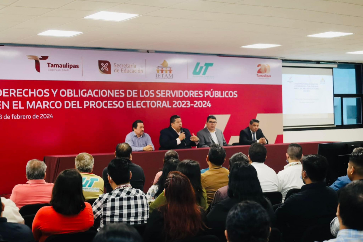 Con la presencia de nuestro rector, el Mtro. Juan Dionisio Cruz Guerrero, el pasado Viernes 23 de Febrero se impartió el curso “Derechos y Obligaciones de los Servidores Públicos en el Marco del Proceso Electoral 2023-2024” al personal directivo, docente y administrativo de nuestra querida Universidad Tecnológica de Altamira.