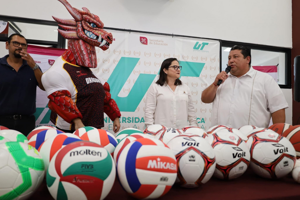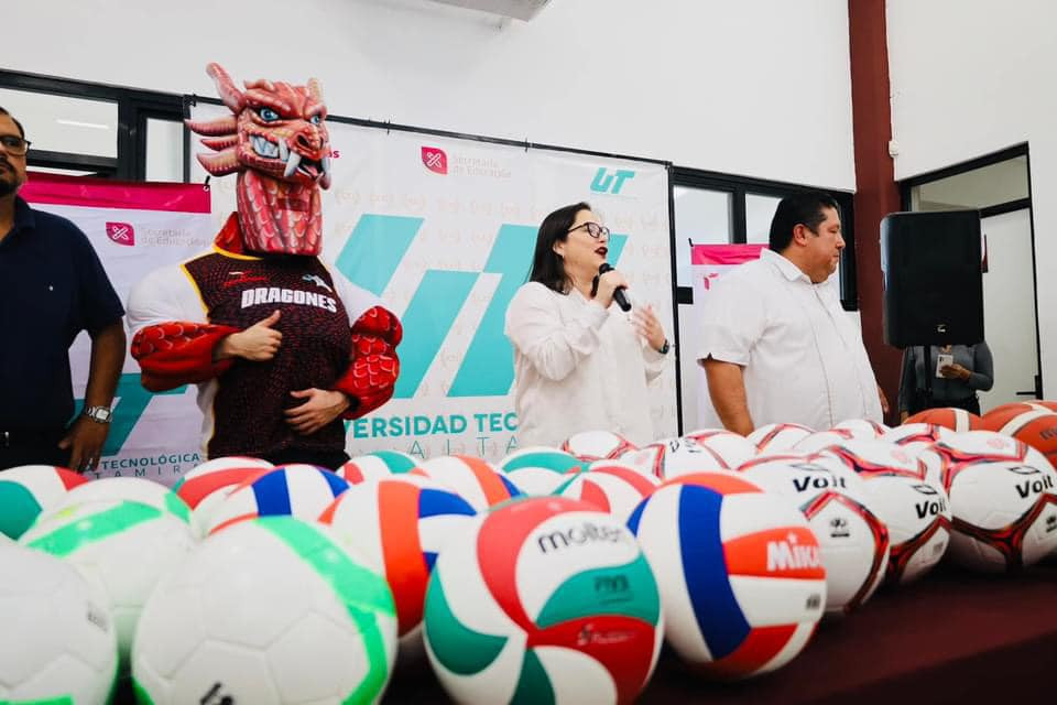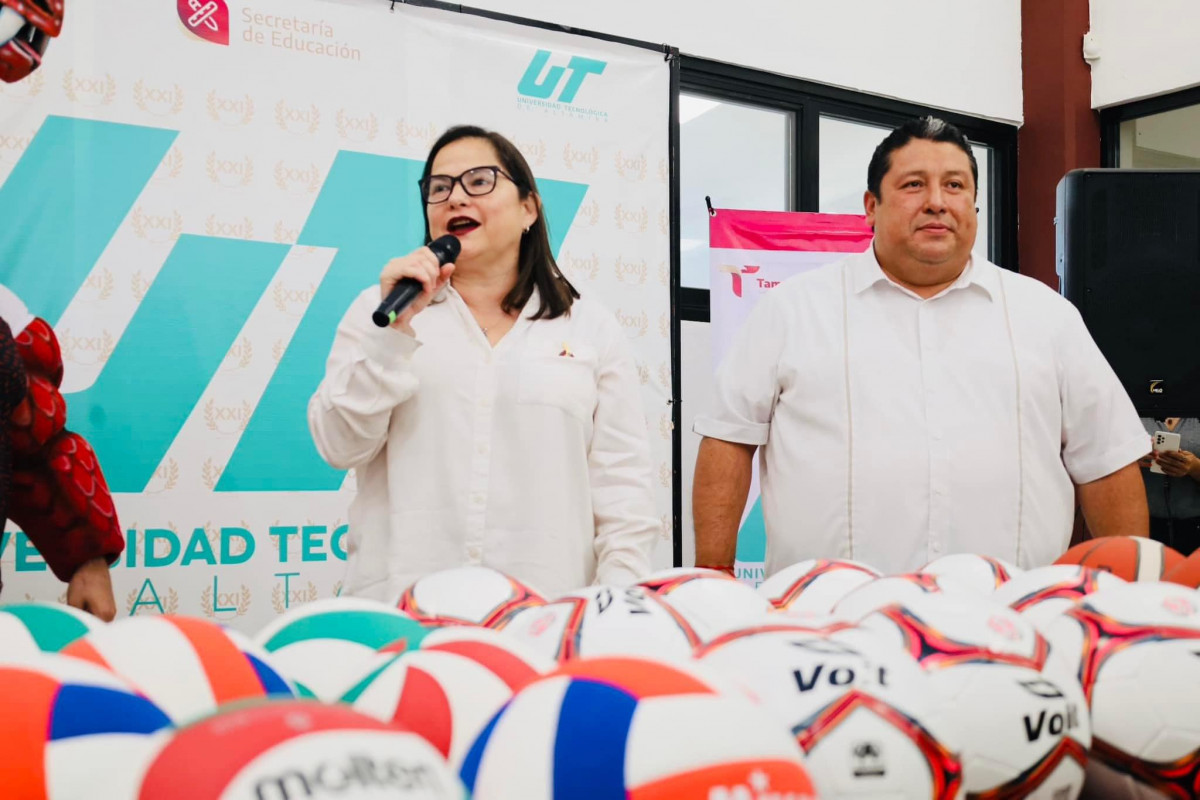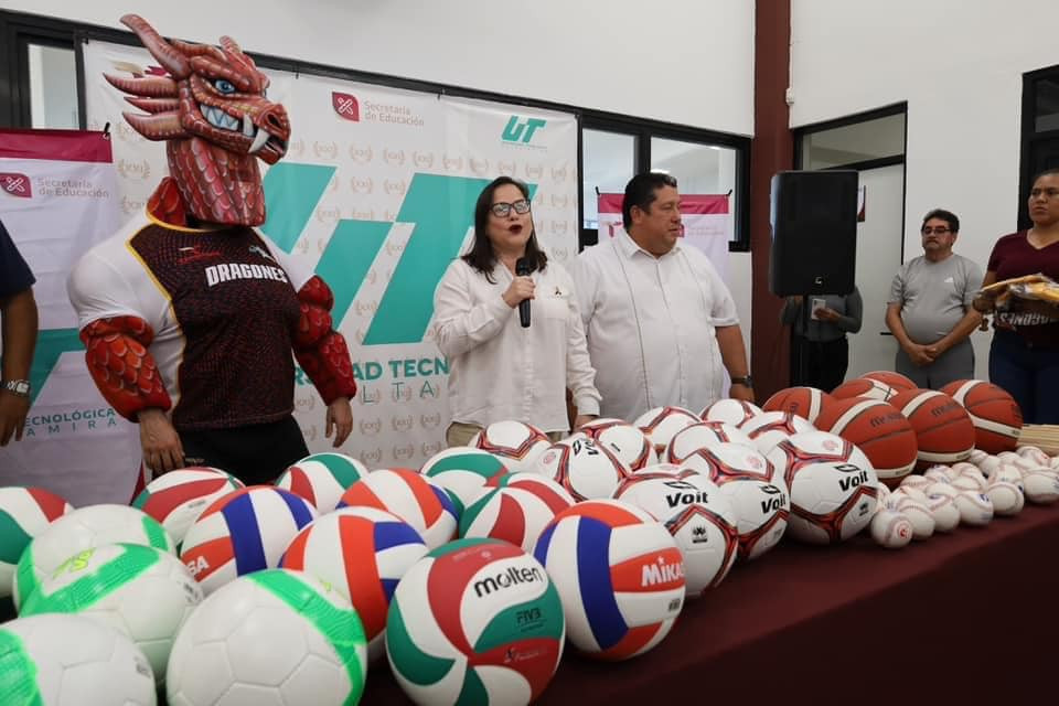 Nuestra secretaria de Educación, Mtra. Lucía Aimé Castillo Pastor en compañía de nuestro rector, Mtro. Juan Dionisio Cruz Guerrero, entregaron uniformes y material deportivo a los equipos de nuestra querida Universidad Tecnológica de Altamira
