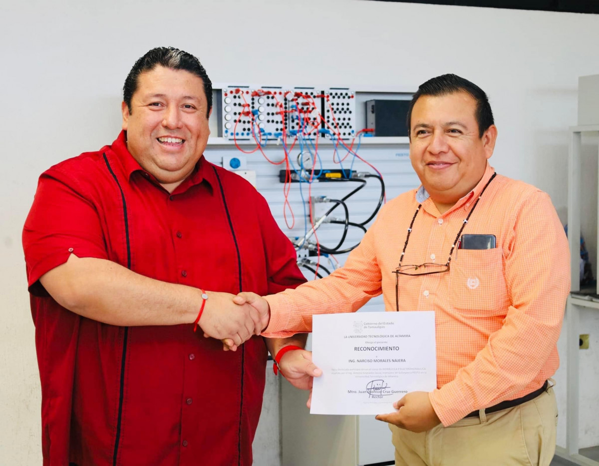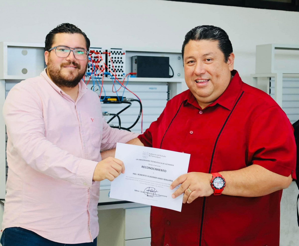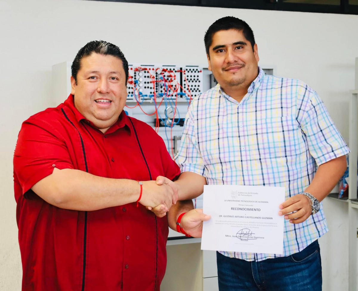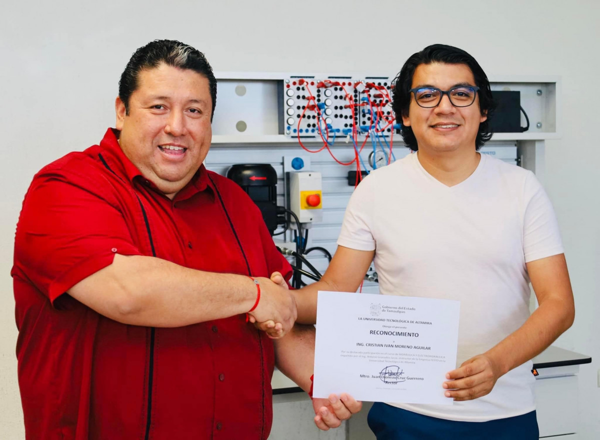 Nuestro rector, el Mtro. Juan Dionisio Cruz Guerrero entregó reconocimientos a las y los profesores de la Carrera de Mantenimiento Industrial de nuestra querida Universidad Tecnológica de Altamira que participaron recientemente en el “Curso de Hidráulica y Electrohidráulica en módulos didácticos de Festo”.