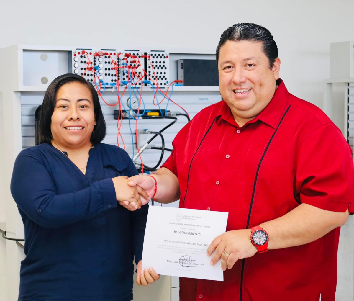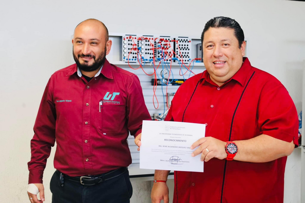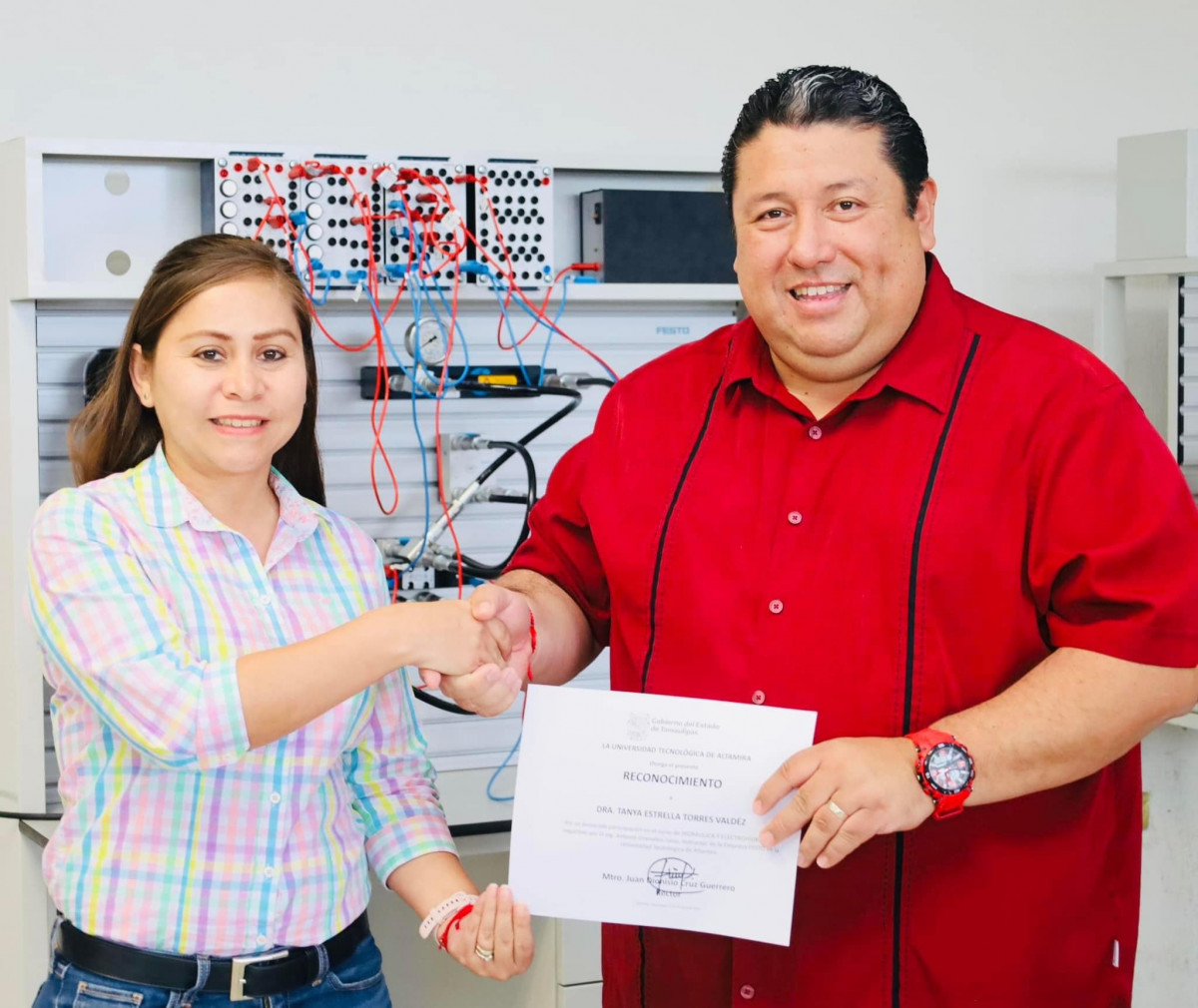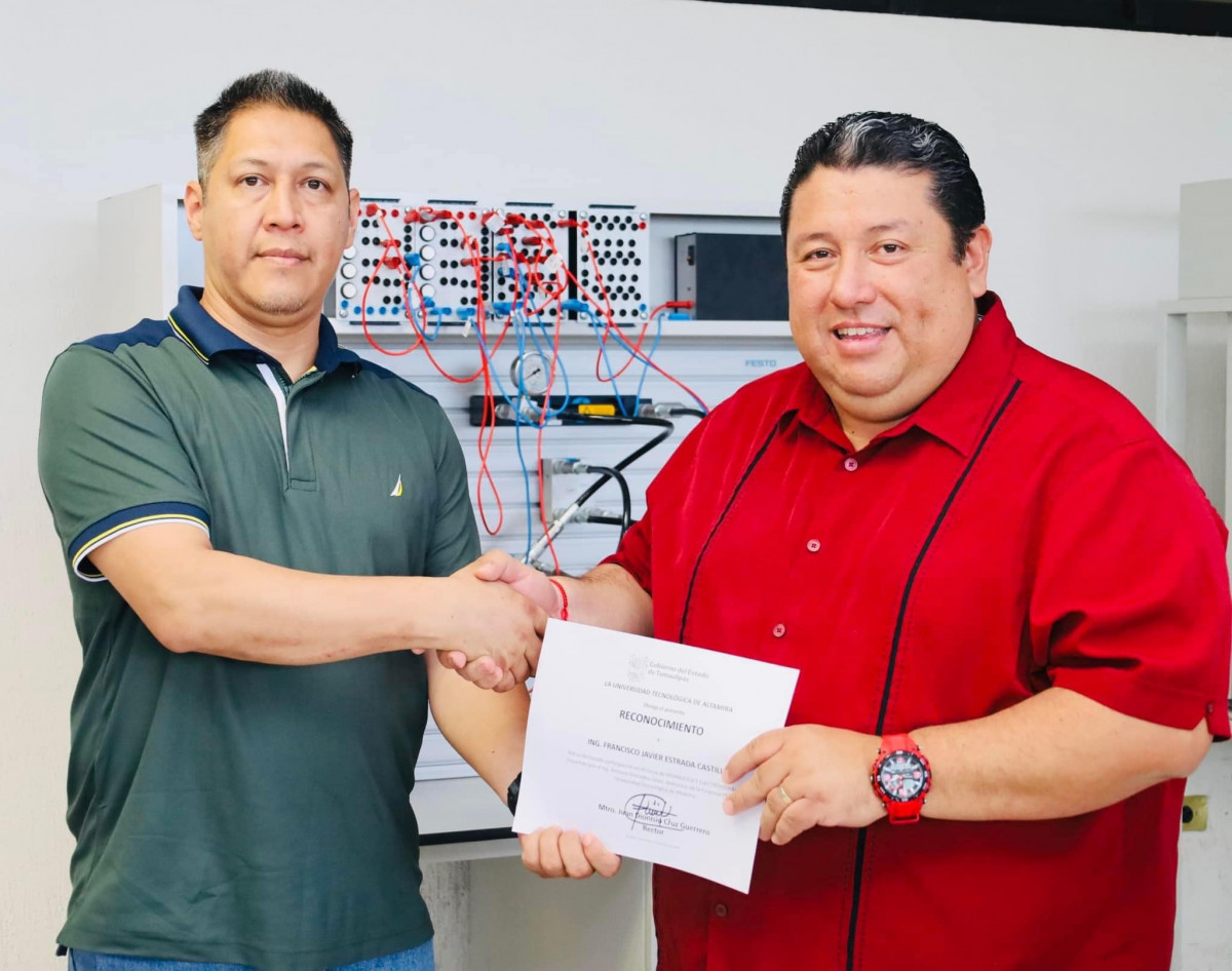 Nuestro rector, el Mtro. Juan Dionisio Cruz Guerrero entregó reconocimientos a las y los profesores de la Carrera de Mantenimiento Industrial de nuestra querida Universidad Tecnológica de Altamira que participaron recientemente en el “Curso de Hidráulica y Electrohidráulica en módulos didácticos de Festo”.