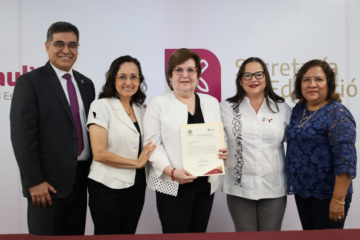 Por conducto de la Secretaria de Educación Mtra. Lucía Aimé Castillo Pastor, se hizo entrega del nombramiento frente al personal directivo, administrativo, docente y alumnos.
