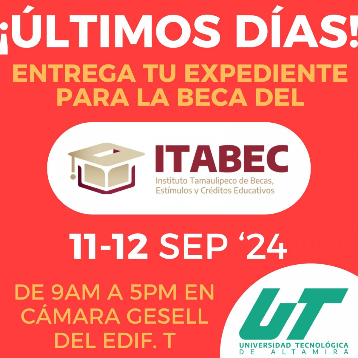 Queda muy poco tiempo para que hagas la entrega de tu documentación y obtener una beca ITABEC. No te quedes fuera!!!