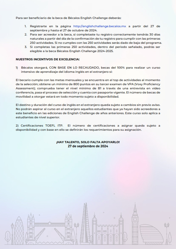 A través del Bécalos English Challenge, te invitamos a ser parte de una oportunidad única
