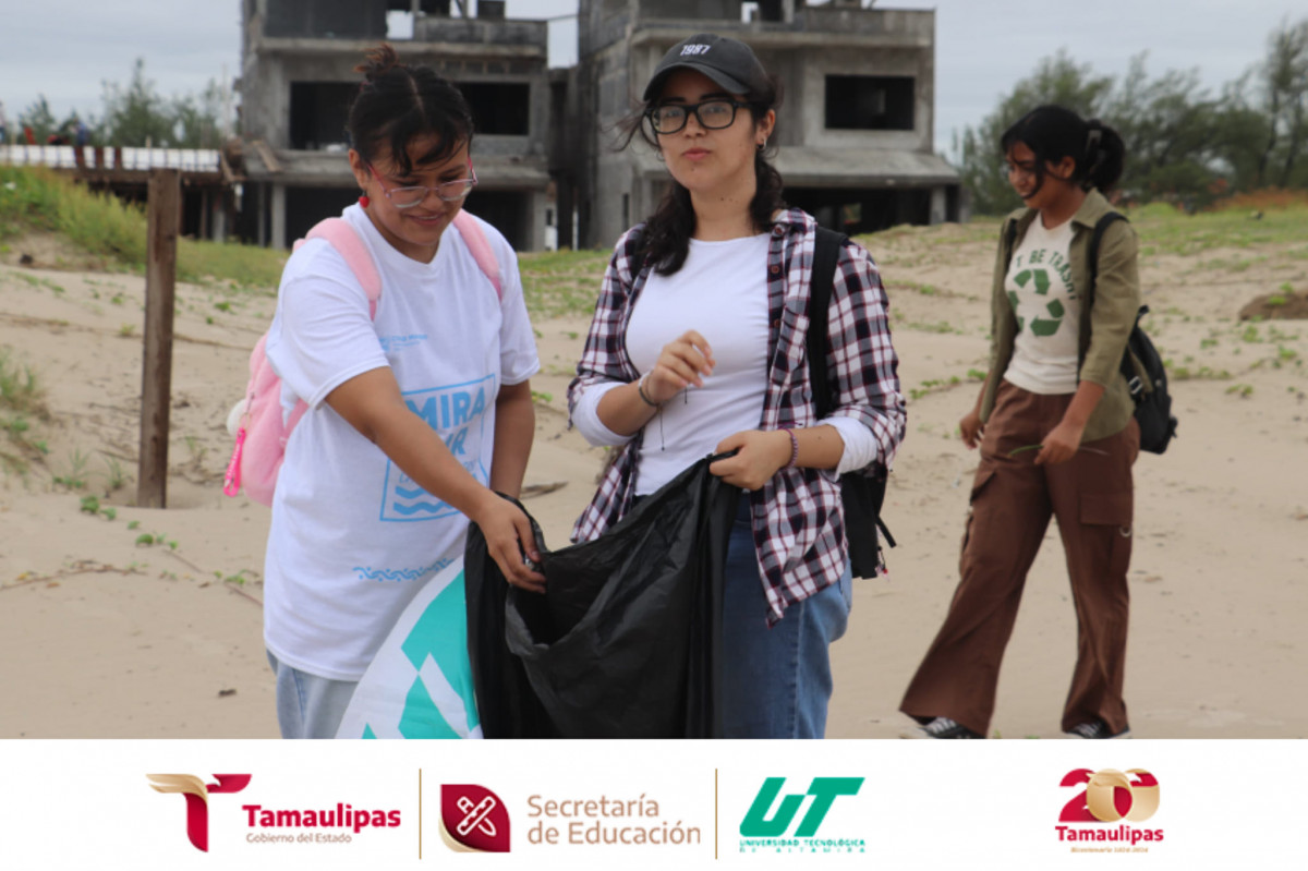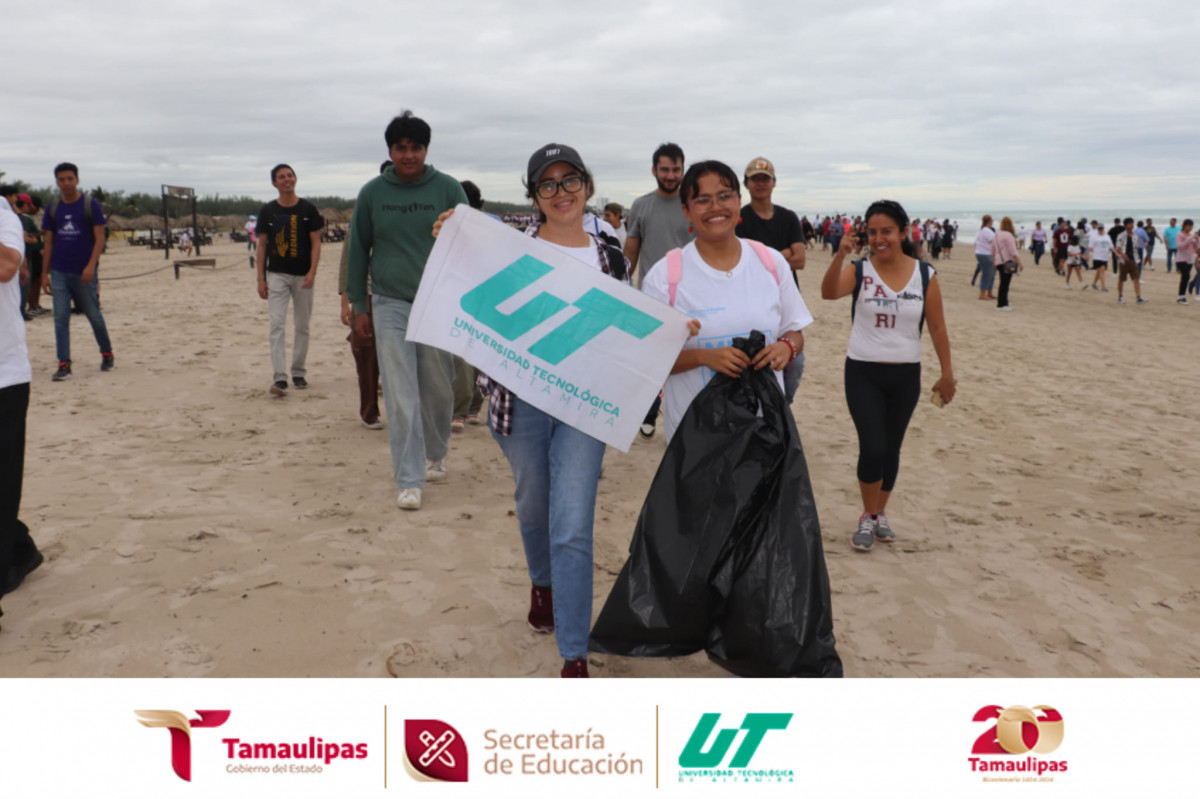 Entusiasta resultó la participación de los alumnos de la Universidad Tecnológica de Altamira en la jornada de limpieza en Playa Miramar, llevada a cabo el pasado Sábado 05 de octubre por la mañana.