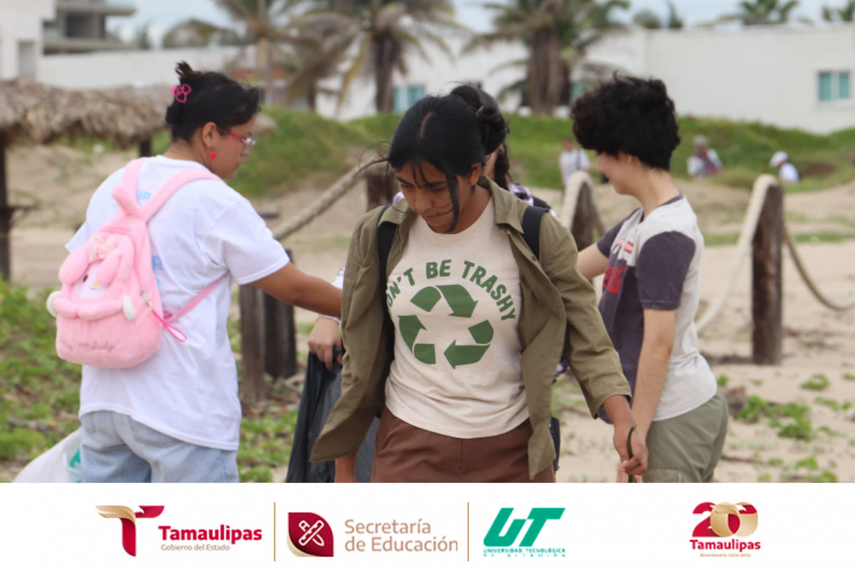 Entusiasta resultó la participación de los alumnos de la Universidad Tecnológica de Altamira en la jornada de limpieza en Playa Miramar