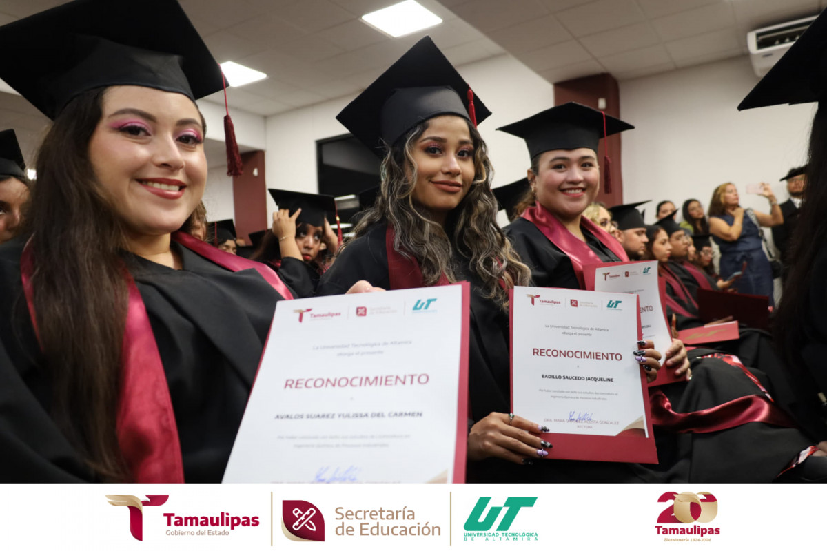 Ceremonia de Graduación de Ingeniería en Mantenimiento Industrial, Química en Procesos Industriales y Mecatrónica, contando con madrina de lujo en la persona de la Mtra. Lucía Aimé Castillo Pastor, Secretaria de Educación de Tamaulipas.