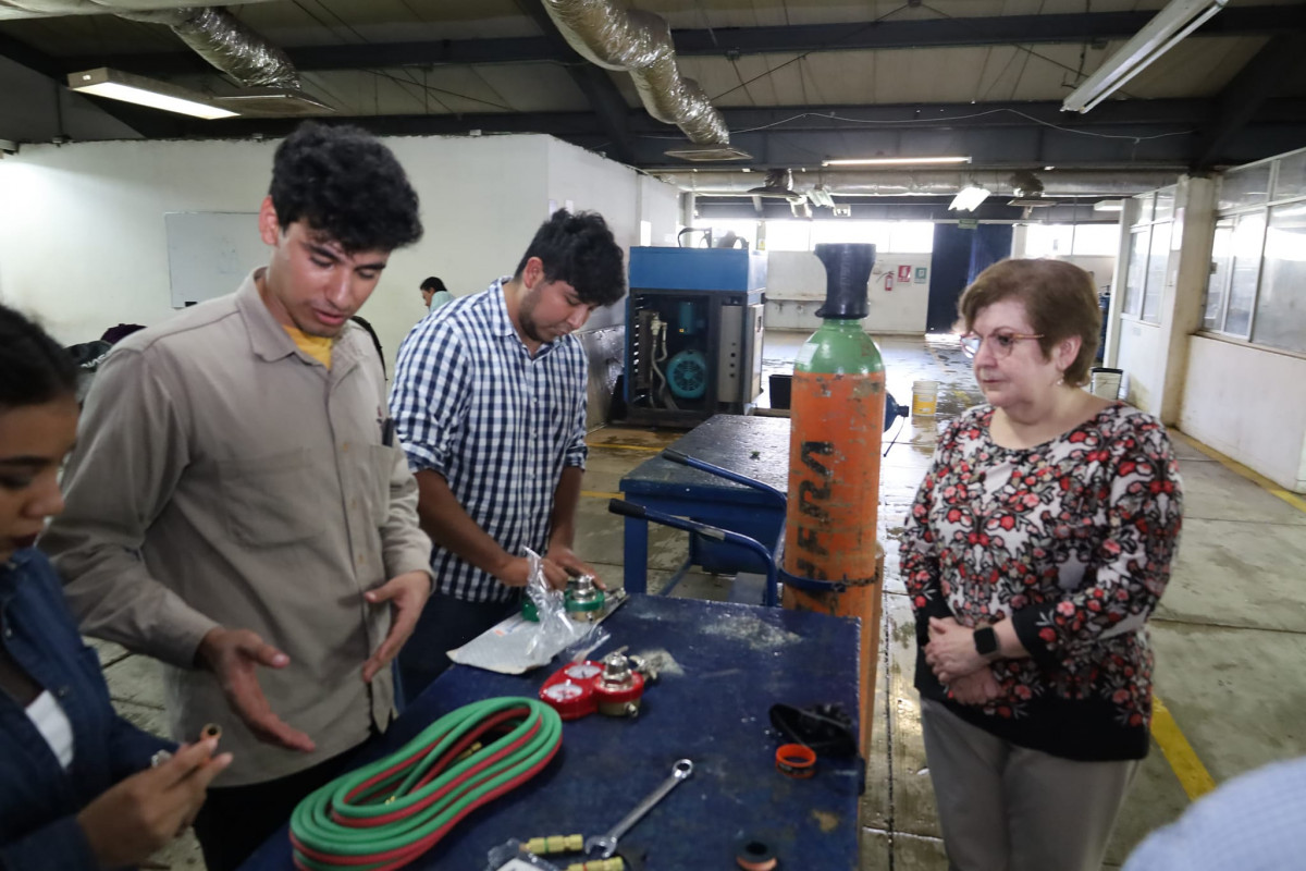 La rectora Dra. Mara Acosta González en compañía del director de la carrera Mtro. Agustín Cervantes Torres, saludó y supervisó las actividades correspondientes a corte y soldadura