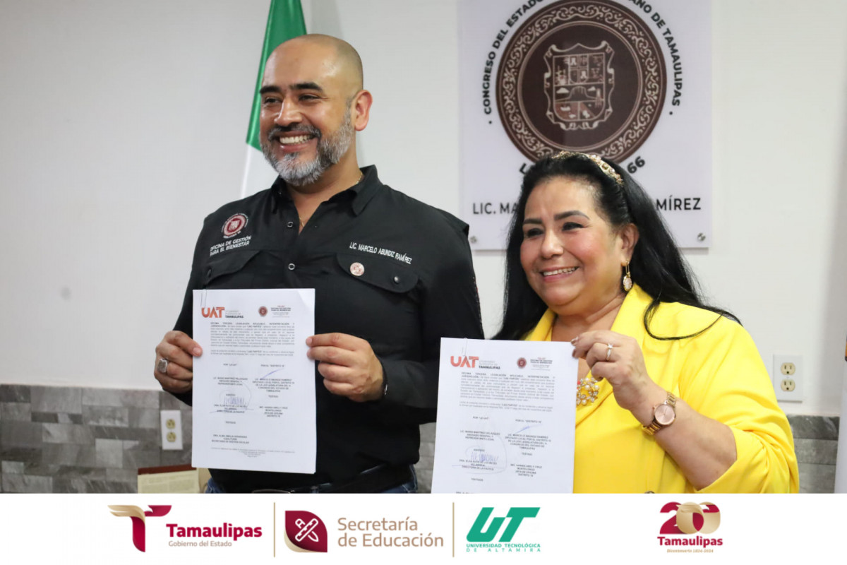 En este mismo marco se atestiguó la firma del Convenio específico en materia de servicio social y prácticas profesionales entre la Universidad Autónoma de Tamaulipas y la Oficina de Gestión.