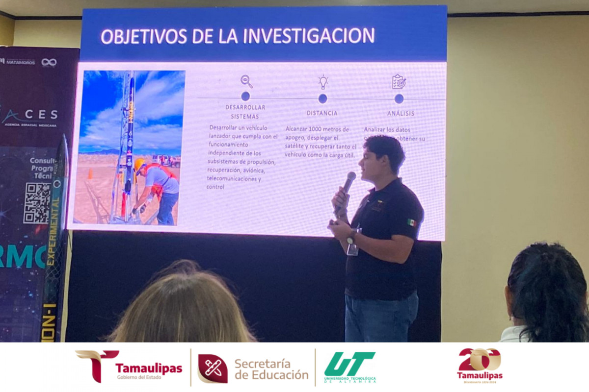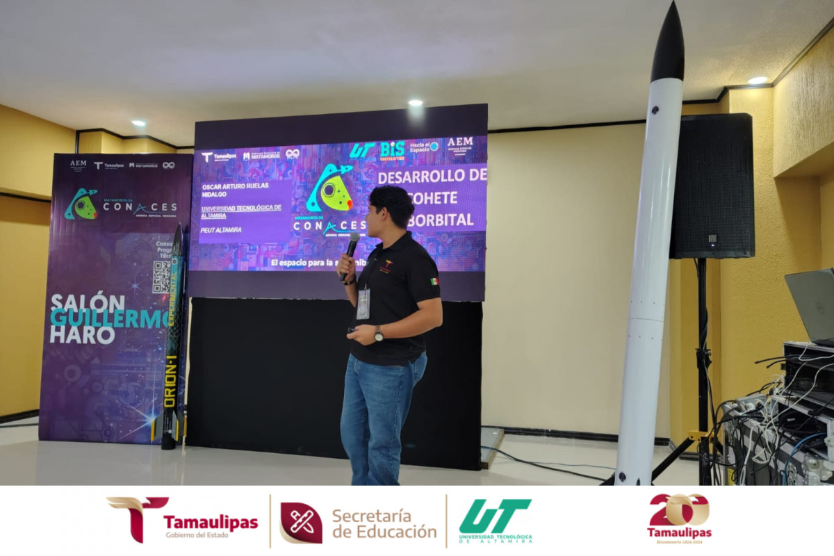 Nuestro alumno Oscar Ruelas de la carrera de Mecatrónica BIS, presentó la conferencia «Desarrollo de un cohete suborbital», dentro de las actividades del quinto Congreso Nacional de Actividades Espaciales CONACES 2024, que se realiza en la ciudad de Matamoros, Tamaulipas.