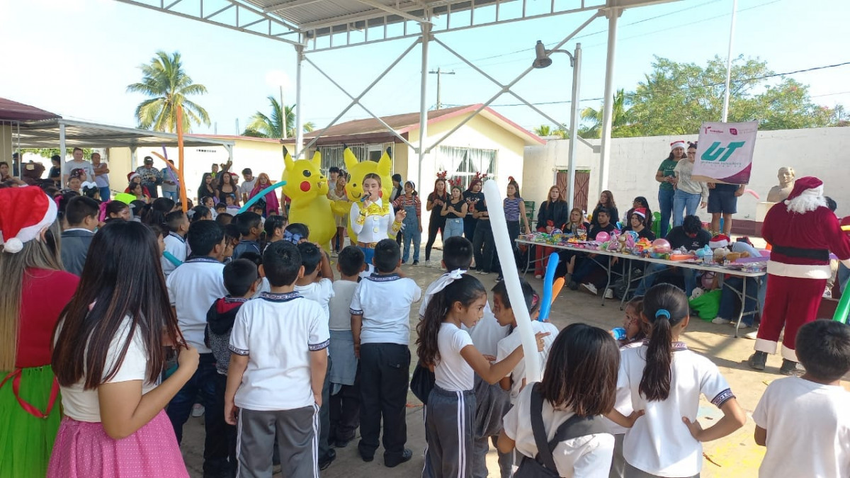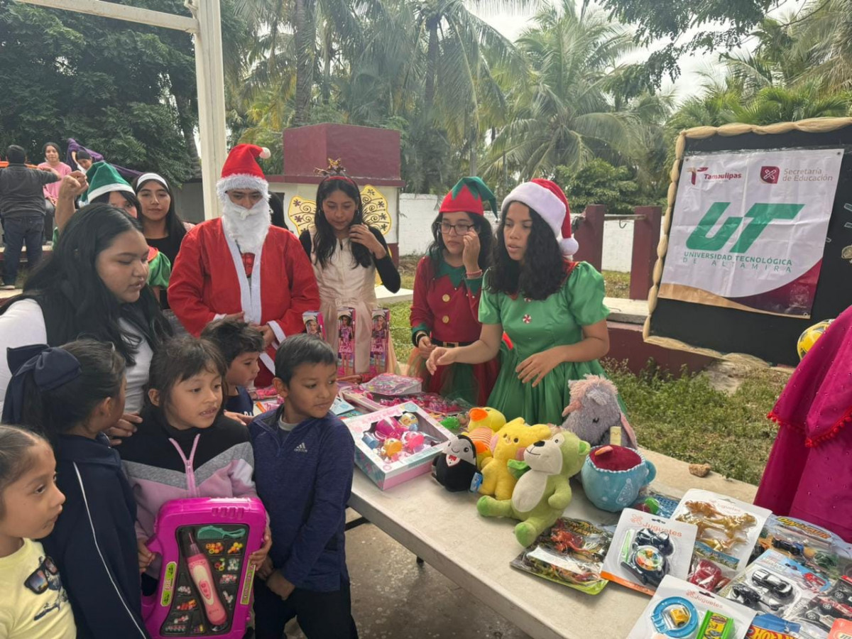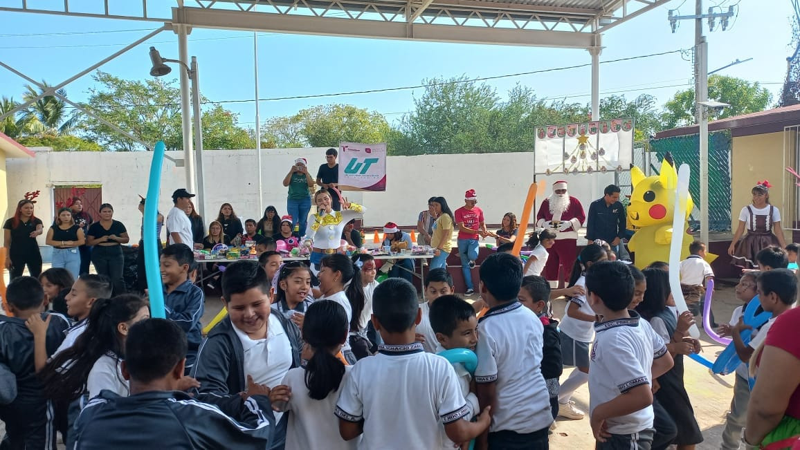 Alumnos de la Universidad Tecnológica de Altamira, de la dirección de Logística y Negocios, visitaron la escuela Primaria Ignacio Zaragoza, ubicada en el ejido Lomas de Real, Altamira, así como a la Escuela Primaria Profesor Patrocinio Huerta Cepeda del ejido Medrano en el mismo municipio, para realizar unas emotivas posadas navideñas