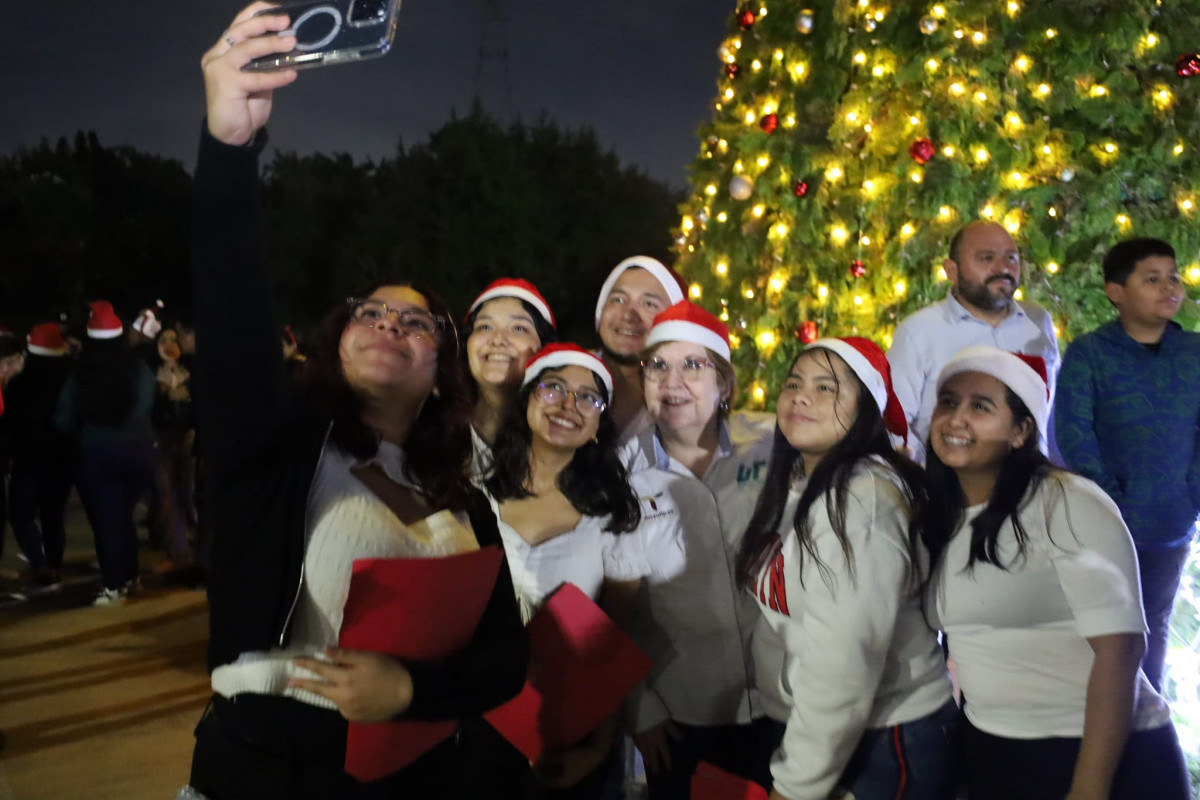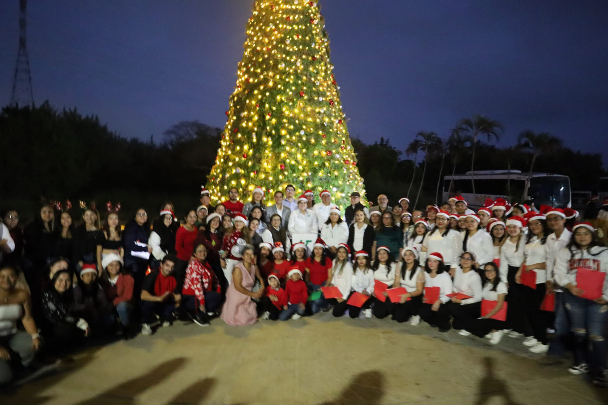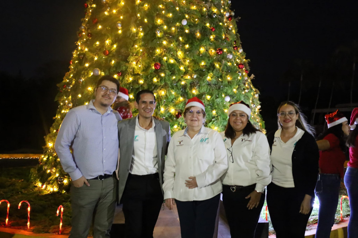 Inicia la navidad en la Universidad Tecnológica de Altamira, con el encendido del monumental pino y la presencia de la comunidad estudiantil, directivos y personal administrativo.