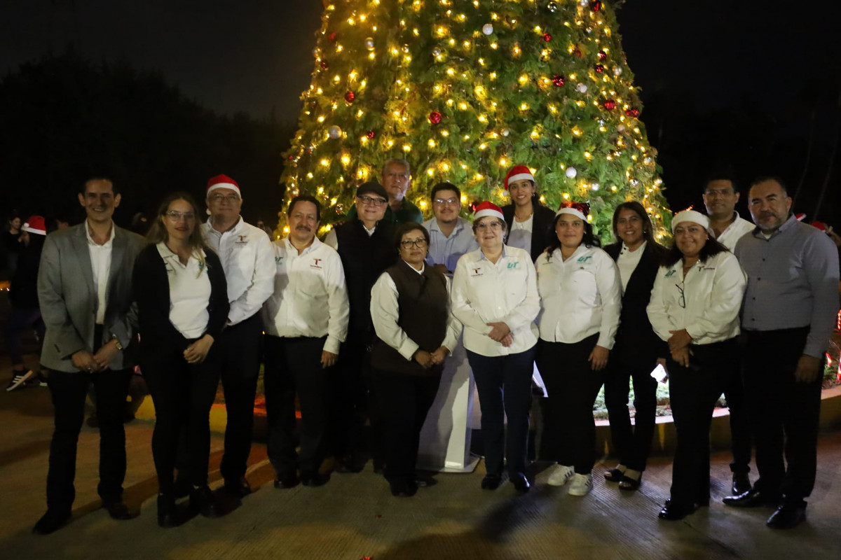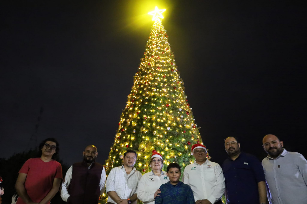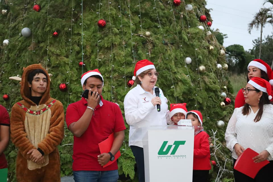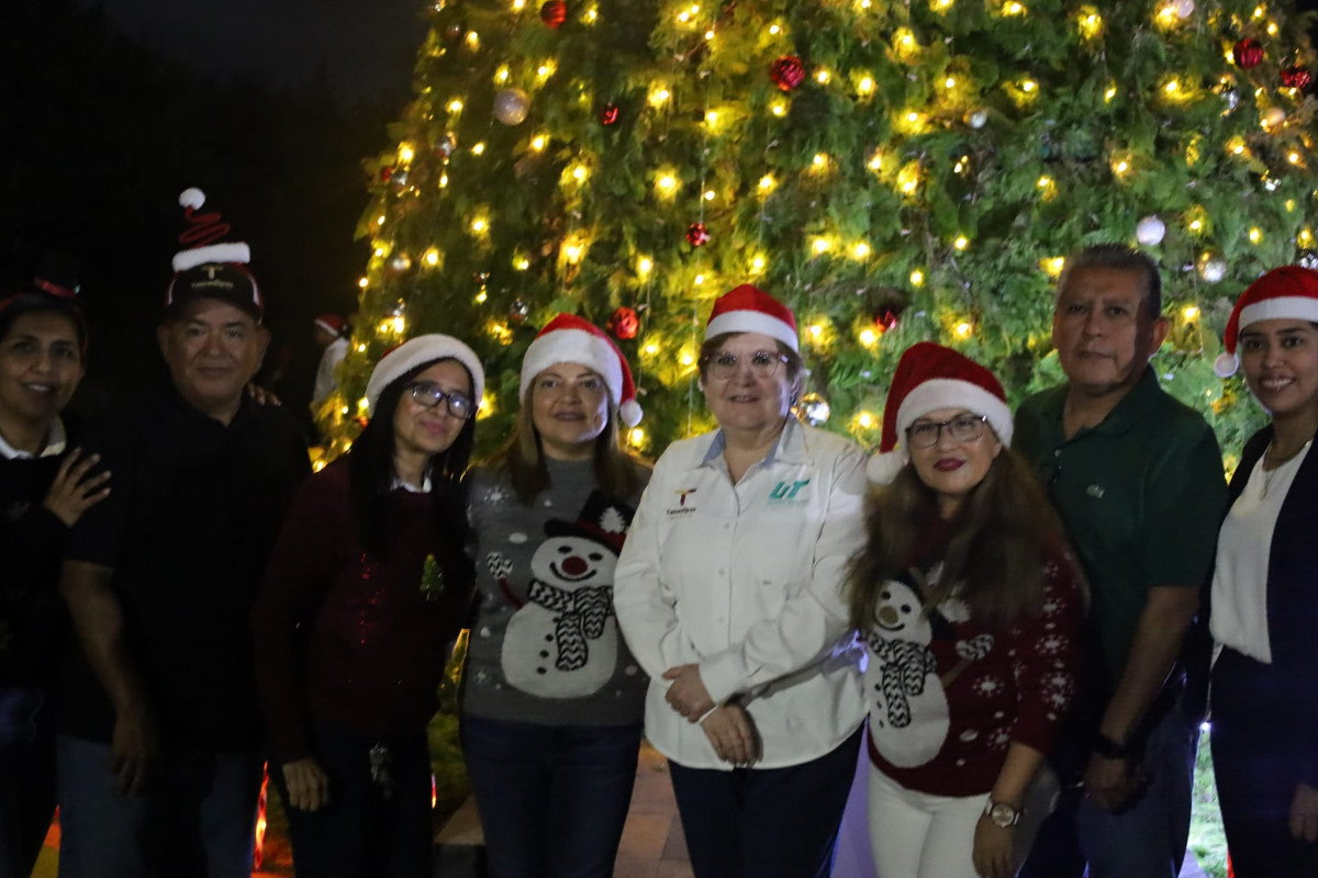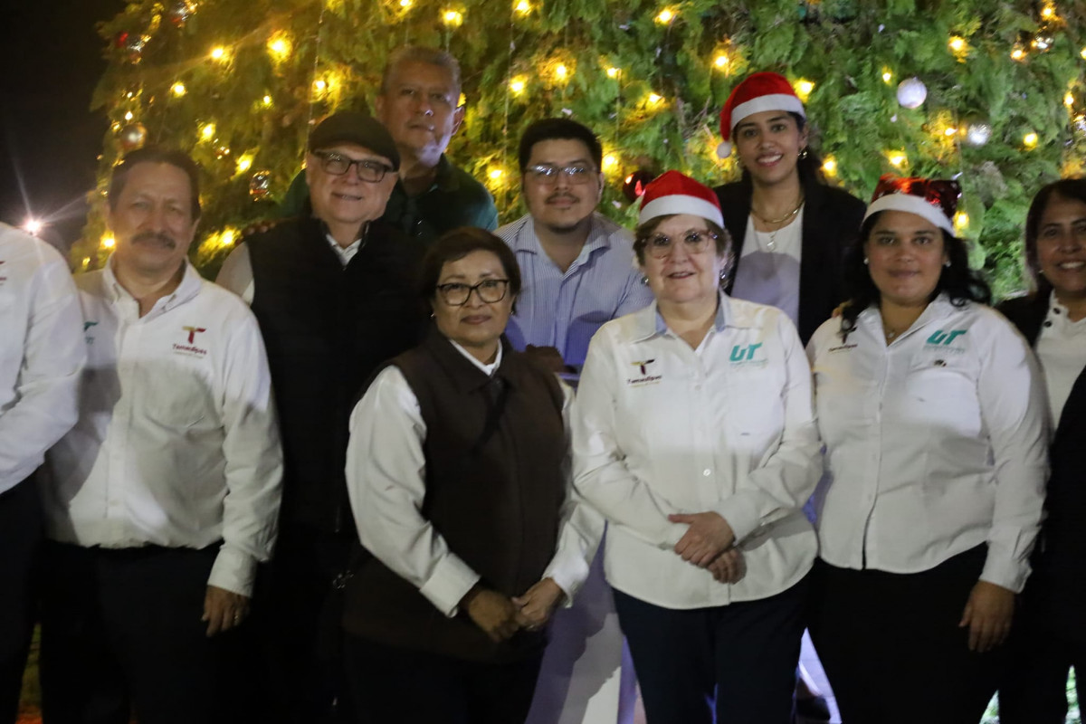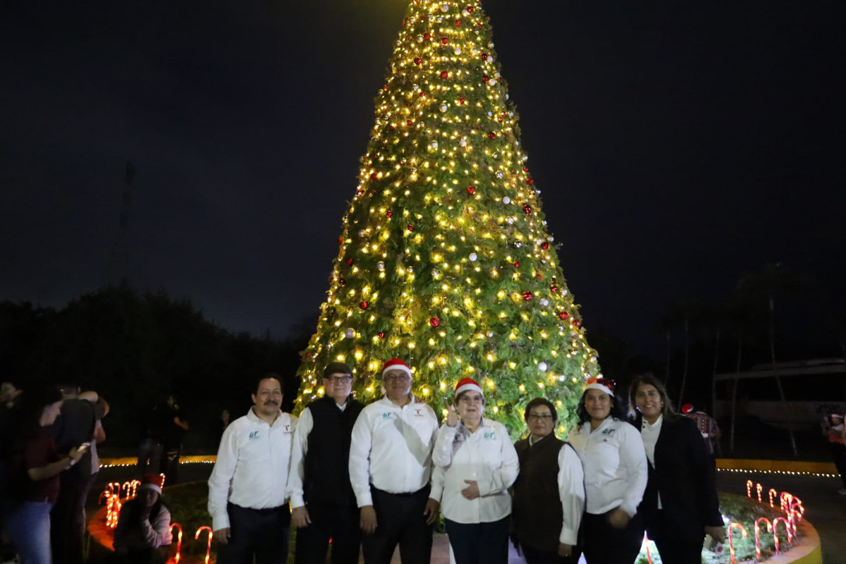 Inicia la navidad en la Universidad Tecnológica de Altamira, con el encendido del monumental pino y la presencia de la comunidad estudiantil, directivos y personal administrativo.