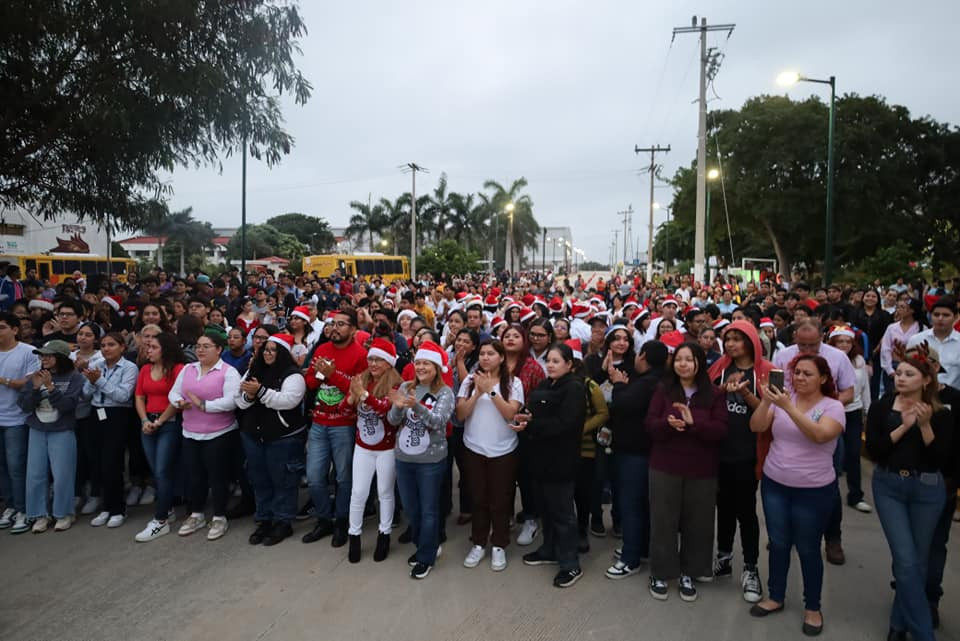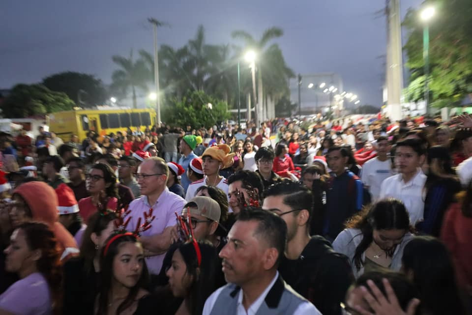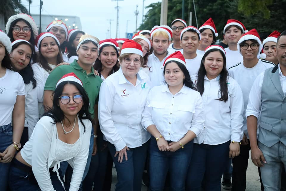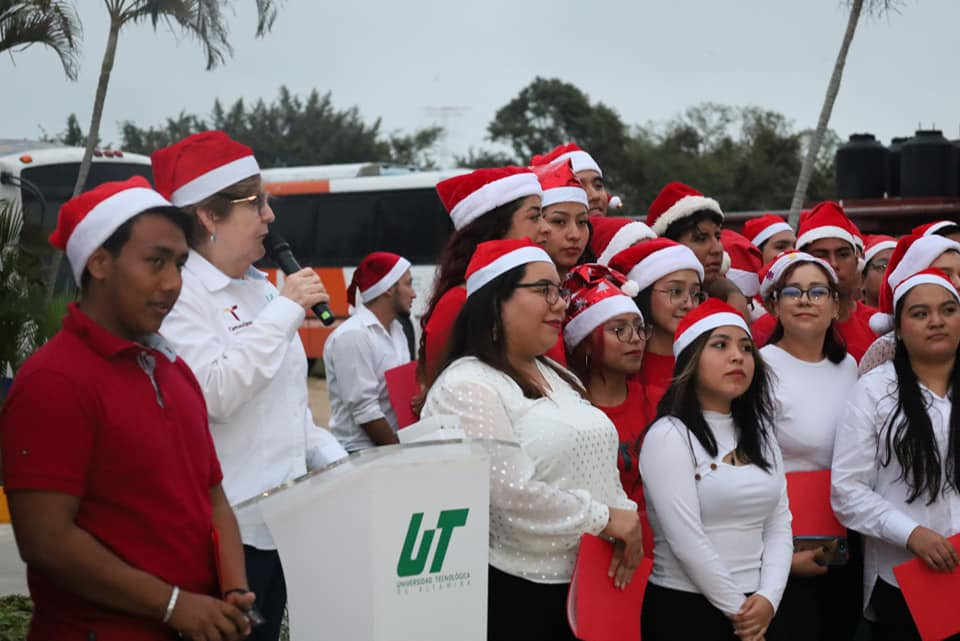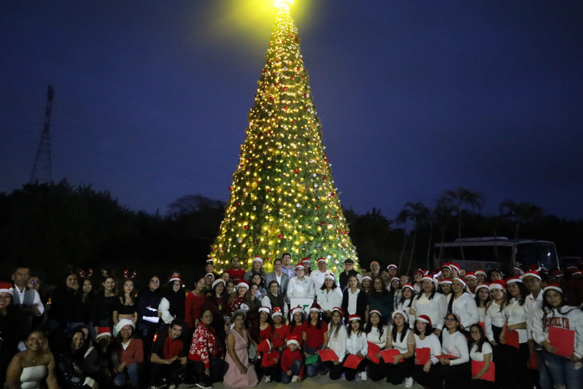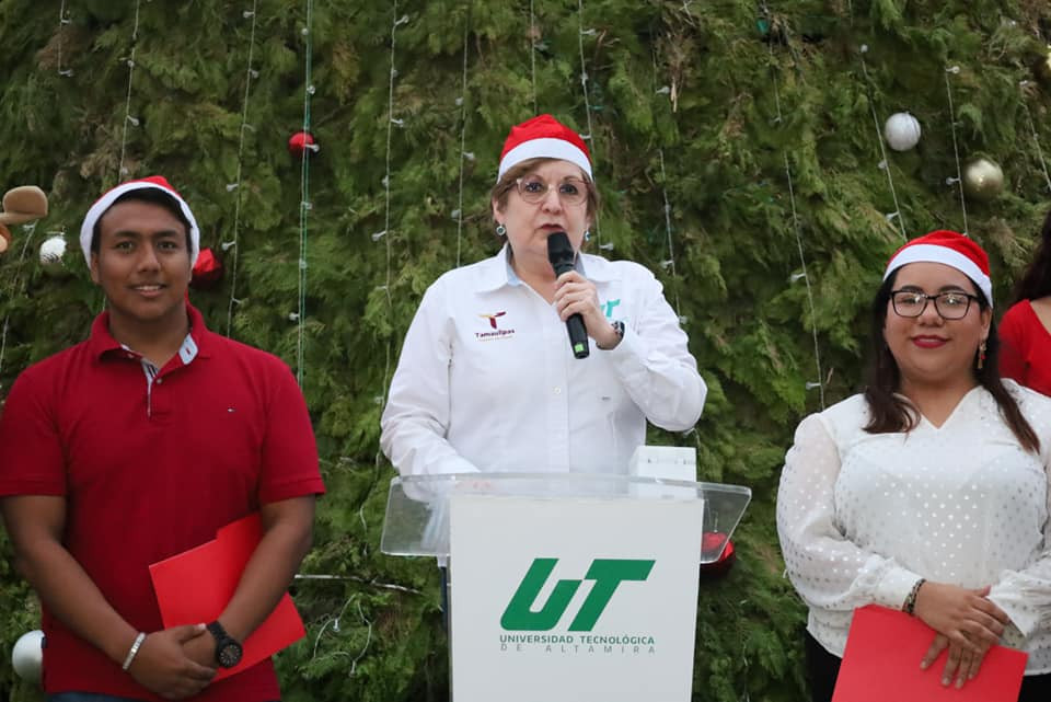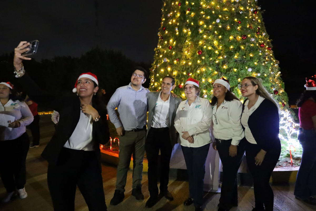Inicia la navidad en la Universidad Tecnológica de Altamira, con el encendido del monumental pino y la presencia de la comunidad estudiantil, directivos y personal administrativo.