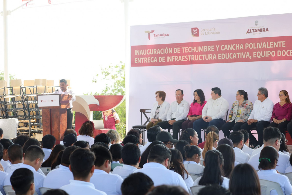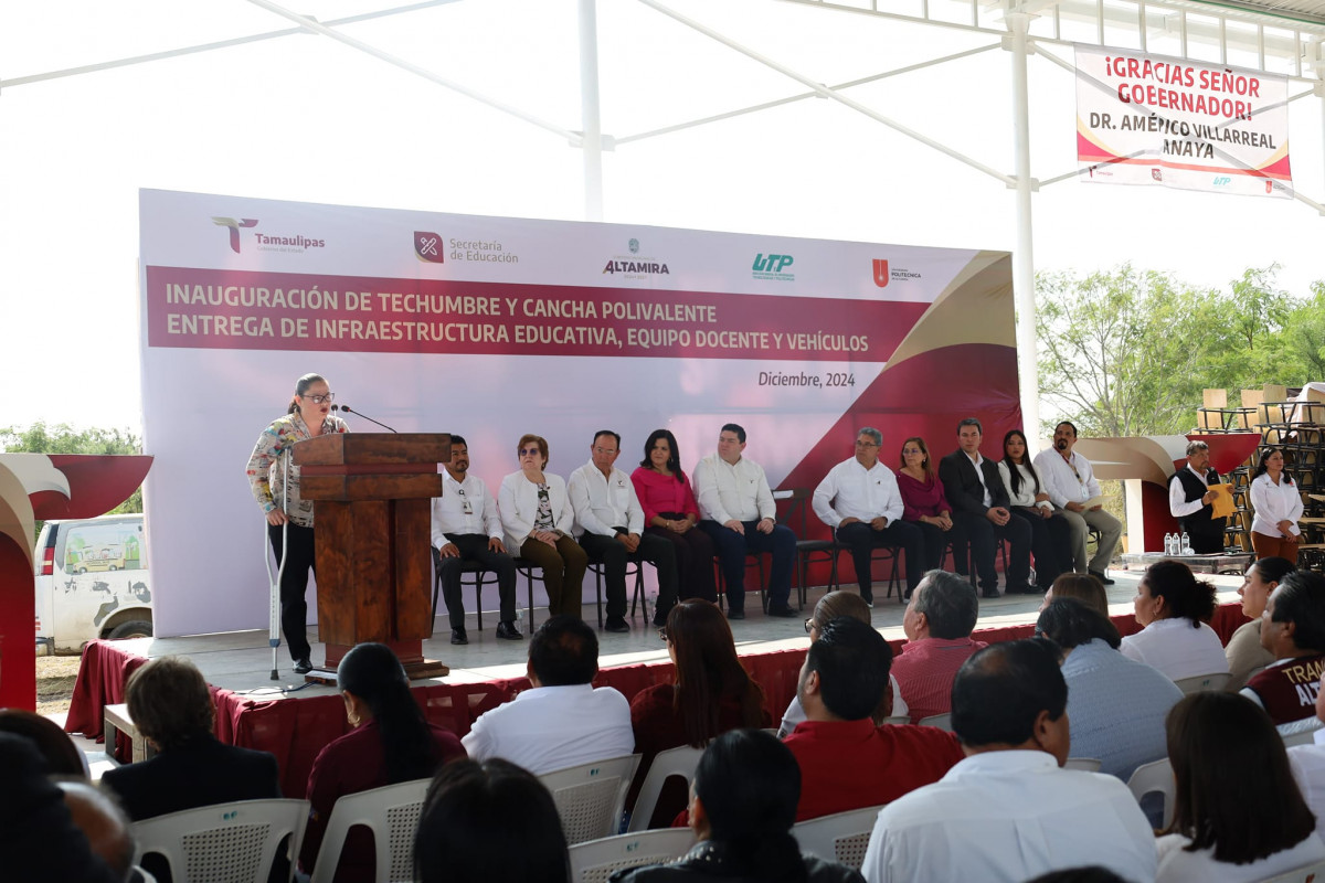 Con la representación de la Dra. Nora Hilda de los Reyes Vázquez, titular de la Oficina de Enlace Educativo en el Estado, nuestra rectora la Dra. Mara Acosta González, asistió como invitada de honor a la inauguración de la techumbre y cancha polivalente en la Universidad Politécnica de Altamira, así como entrega de infraestructura educativa, equipo docente y vehículos.