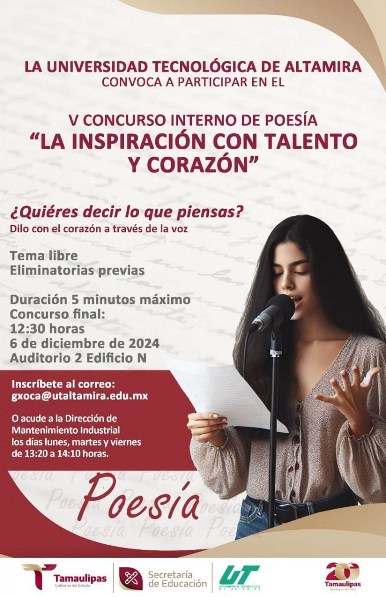Se acerca la fecha para participar en el quinto Concurso Interno de Poesía, inscríbete y demuestra tu talento.