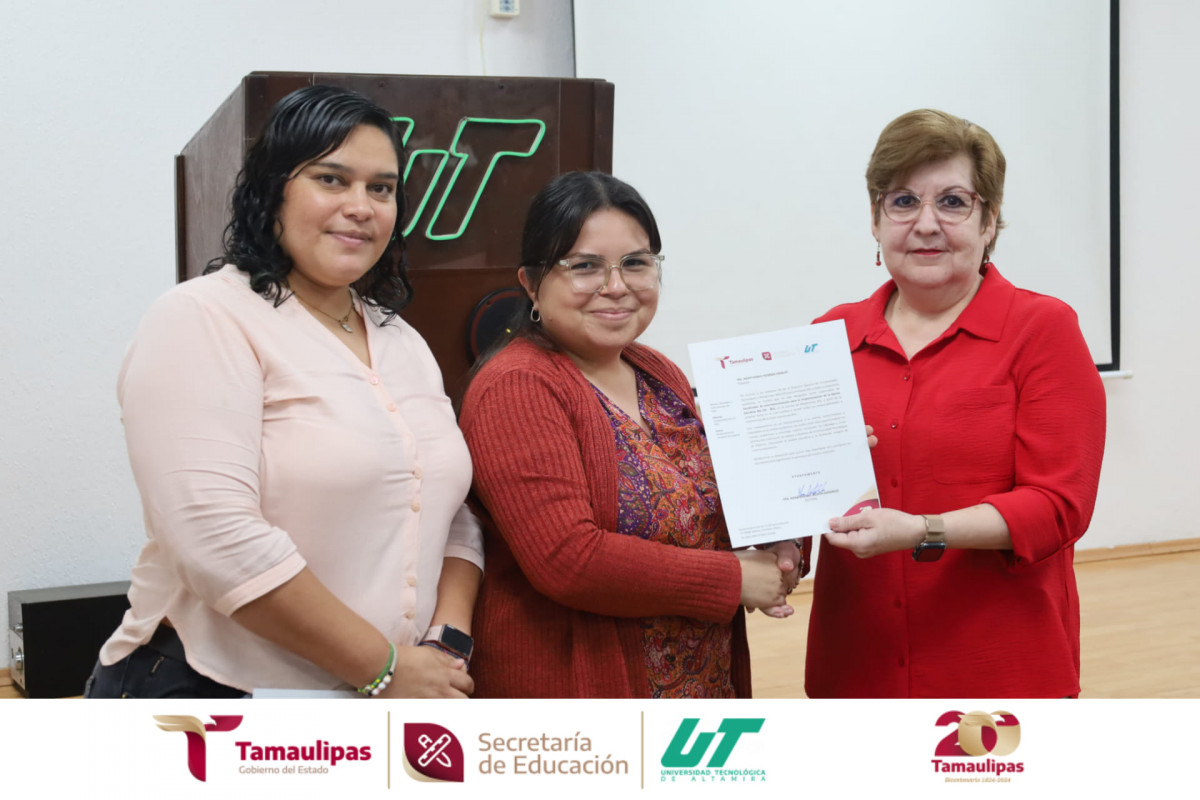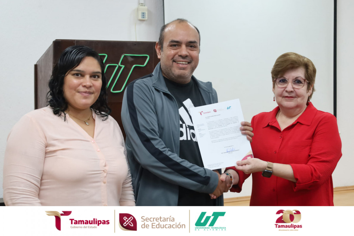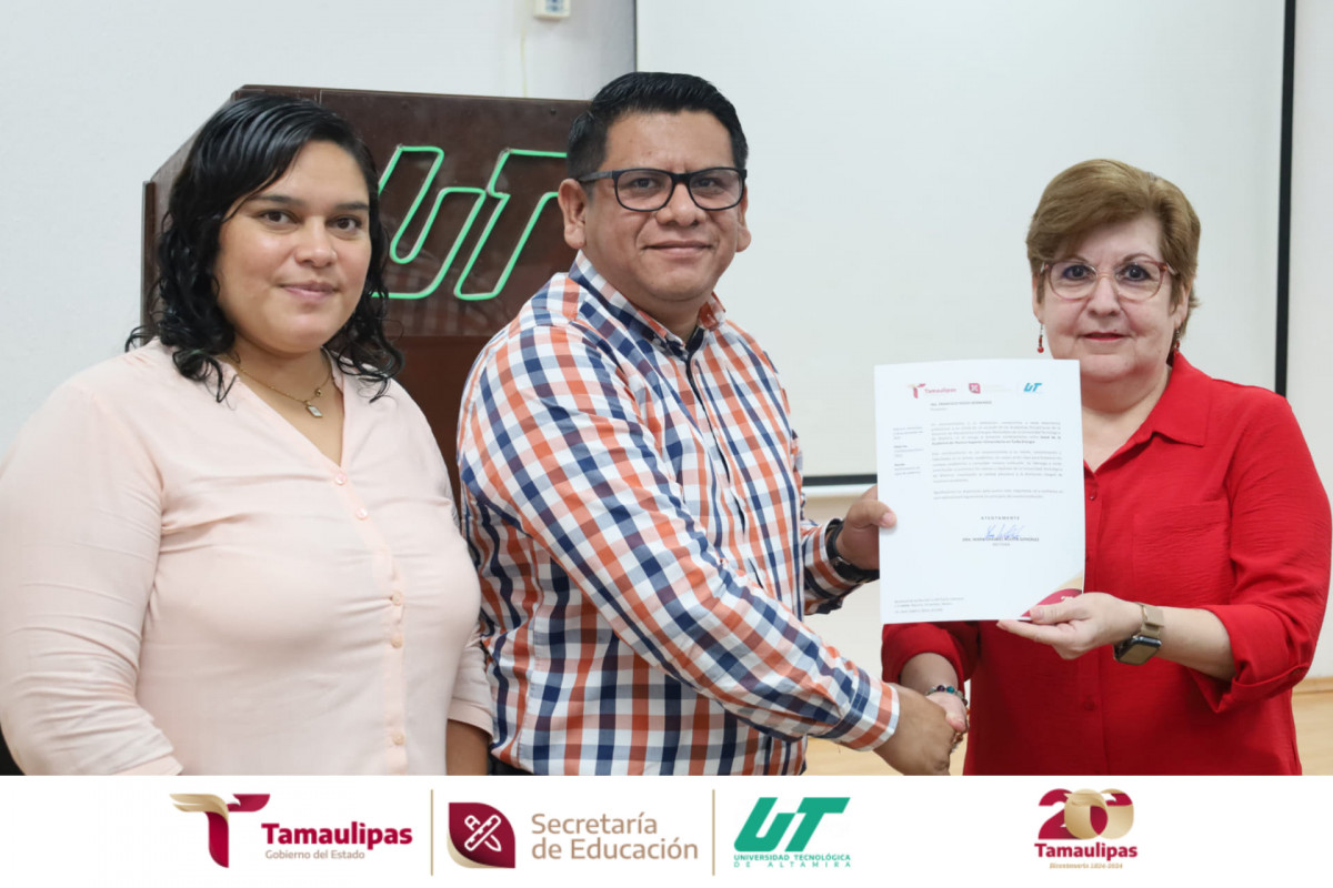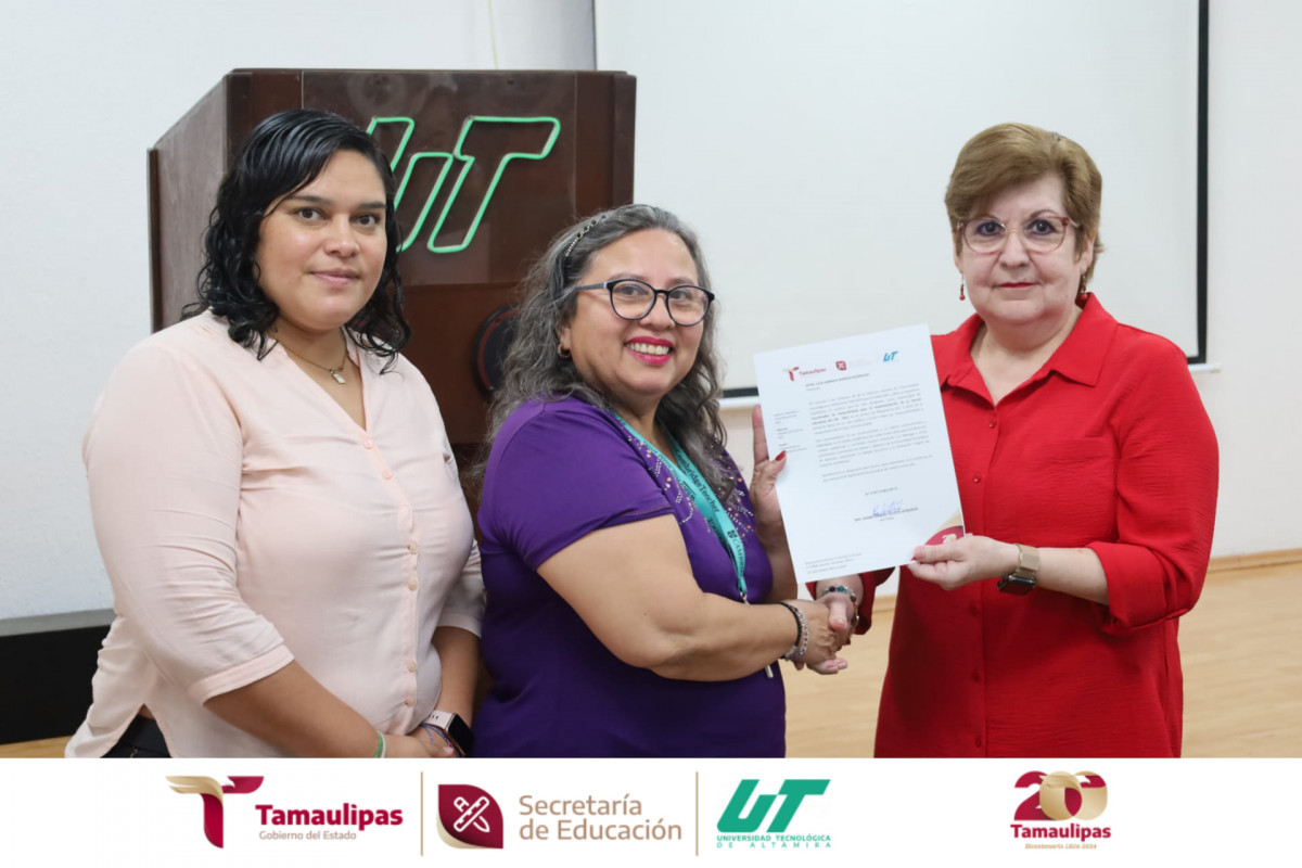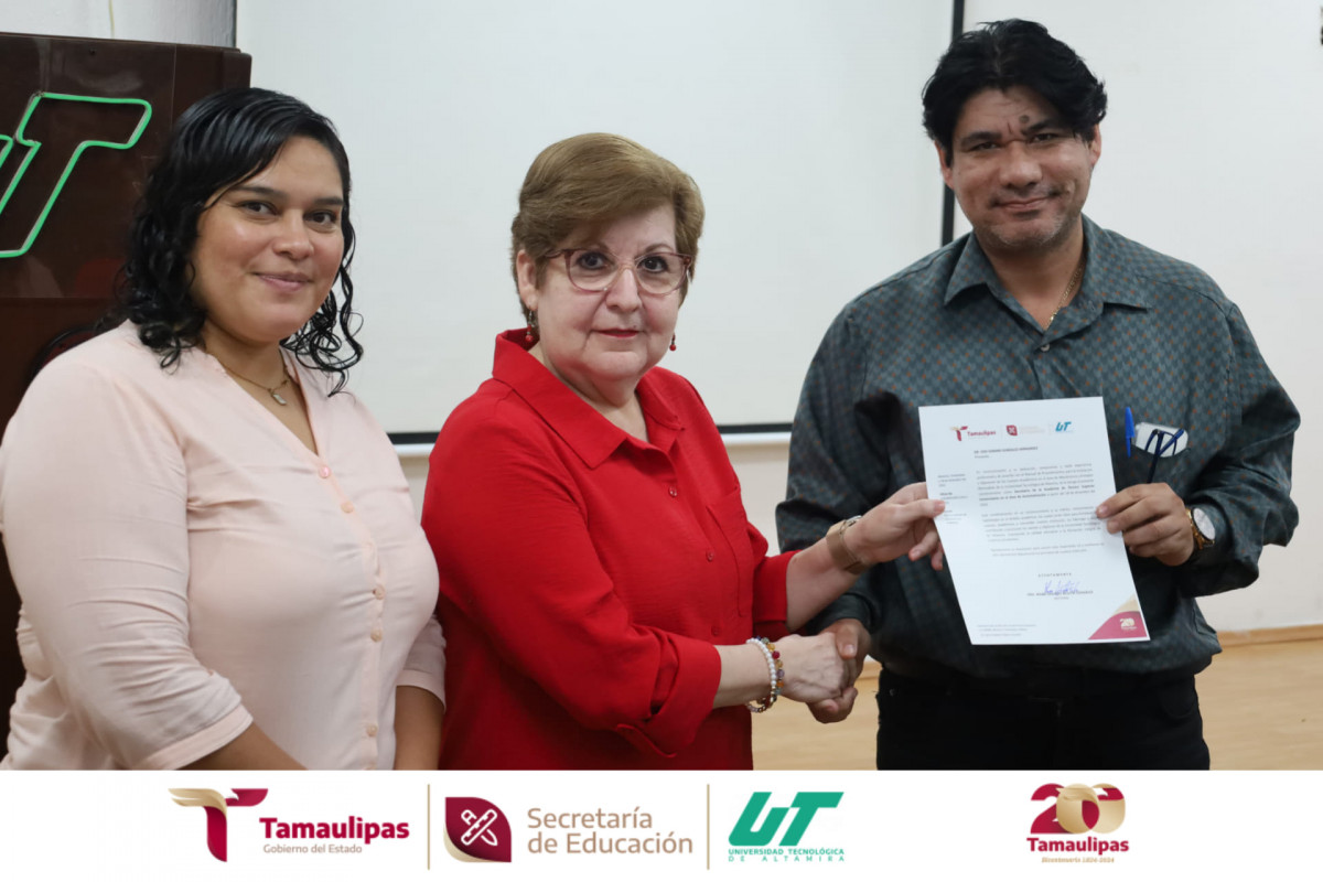 La Dra. Mara Acosta González, rectora de la Universidad Tecnológica de Altamira, hizo entrega de nombramientos a las academias de TSU e Ingenierías de las carreras de Mecatrónica y Energías Renovables, así como a los coordinadores de la modalidad BIS, académica, internacionalización, sustentabilidad y bilingüismo de la modalidad de mecatrónica BIS.
