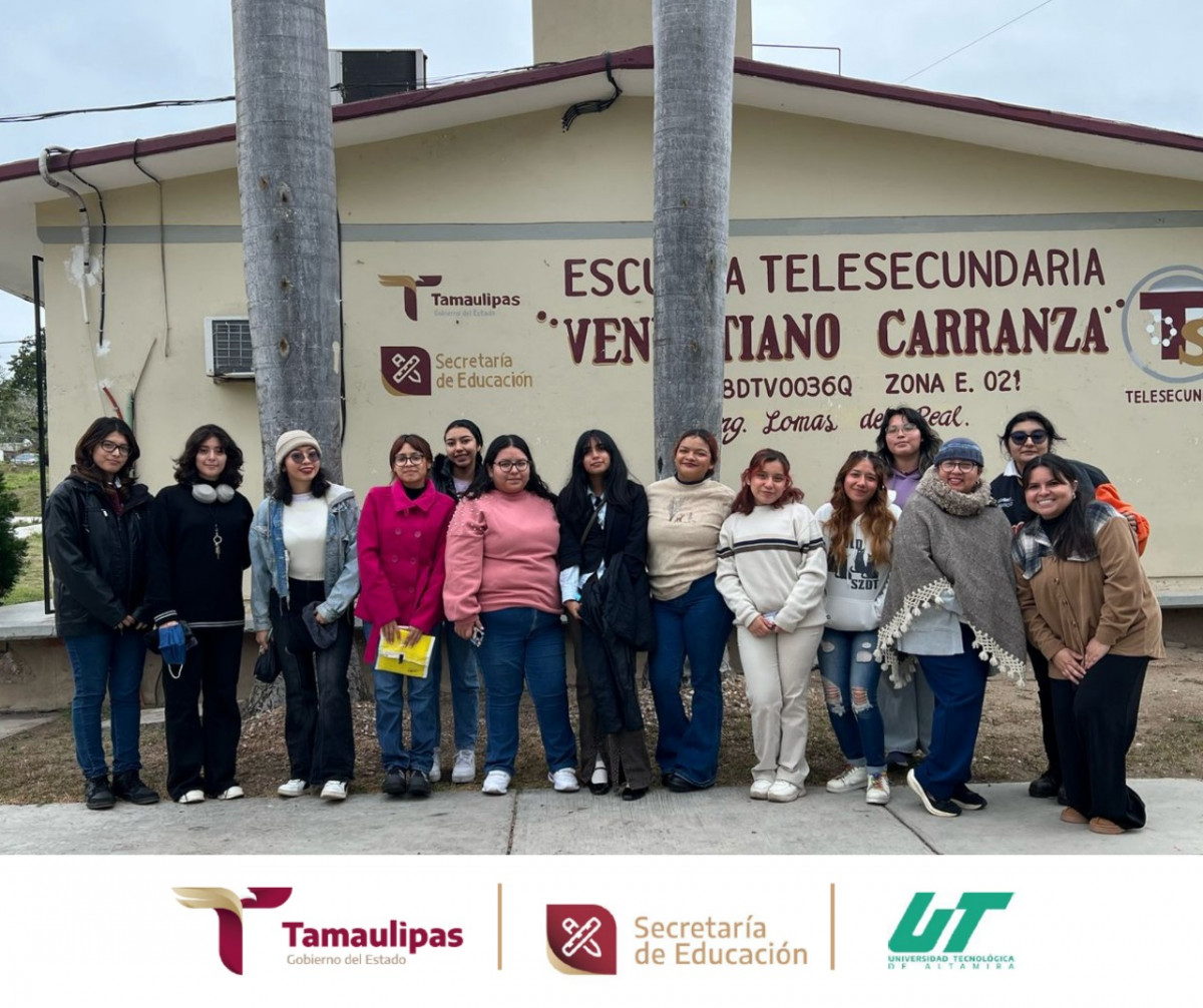 En el marco de «La Mujer y la Niña en la Ciencia 2025”, el club de NIÑAS STEAM pertenecientes a las carreras de Mecatrónica BIS y Energías Renovables y asesoradas por la Ing. Ingryt Karely Pedraza y la Mtra. Lilia Gabriela Barrios visitaron ayer la Telesecundaria «Venustiano Carranza», ubicada en la Col. Lomas del Real en el municipio de Altamira, con la finalidad de incentivar vocaciones en el estudio de carreras STEAM y fomentar la curiosidad, así como el aprendizaje práctico de los conceptos básicos de la electrónica.