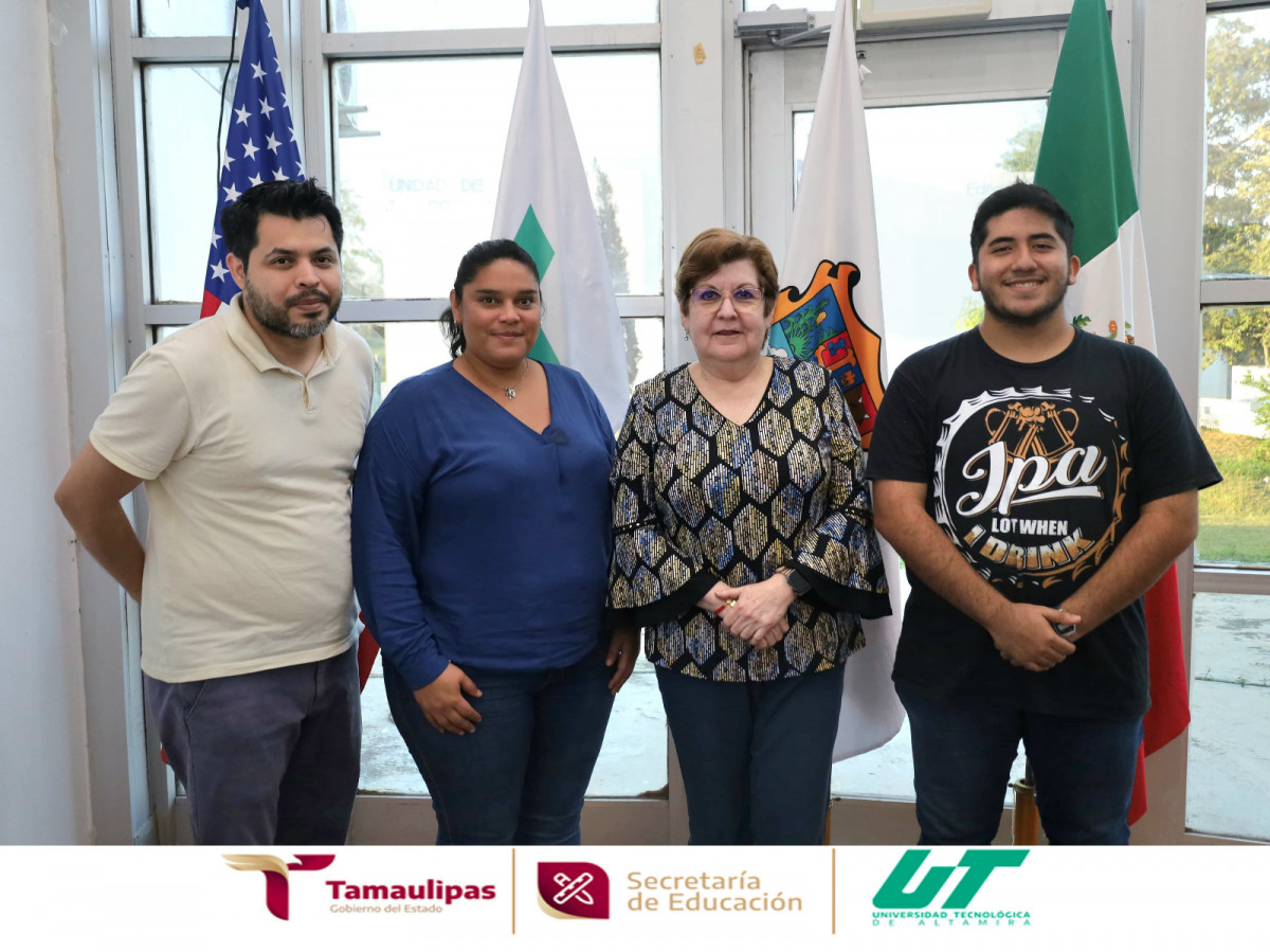Los estudiantes del programa educativo de Mecatrónica, Víctor Eduardo Acosta Villalón, Luis Jerónimo Loera Moreno, Rubén Alexander Rodríguez Muñoz con sus asesores: Mtro. José Antonio Rodríguez Ahumada y el Dr. Diego Arturo Soto Monterrubio y la Mtra. Mariana Centeno, Directora de Mecatrónica y Energías Renovables, se reunieron con la Dra. Mara Grassiel Acosta González, Rectora de la UTALT, con el propósito de compartir los aprendizajes obtenidos en su brillante actuación.