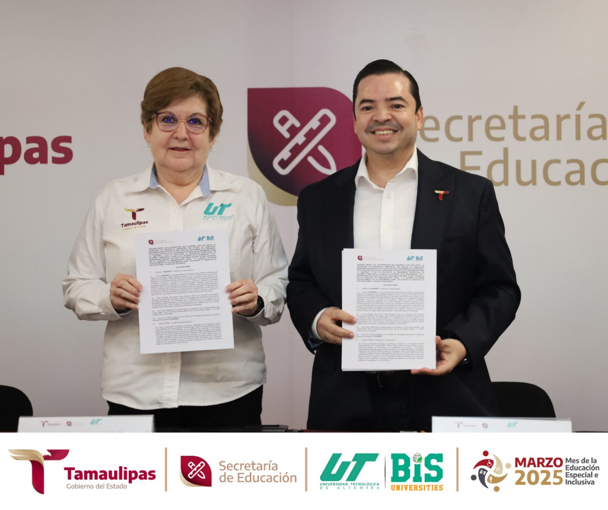 Un paso más hacia el fortalecimiento de nuestra institución y el desarrollo energético de la región. Con la presencia del Secretario de Desarrollo Energético de Tamaulipas, el Biólogo. José Ramón Silva Arizabalo, y la Rectora de la Universidad Tecnológica de Altamira, la Dra. Mara Grassiel Acosta González, firmaron un transcendental Convenio, en donde el eje central es brindar a nuestra comunidad universitaria espacios para la construcción de sus sueños y consolidar su trayectoria profesional.