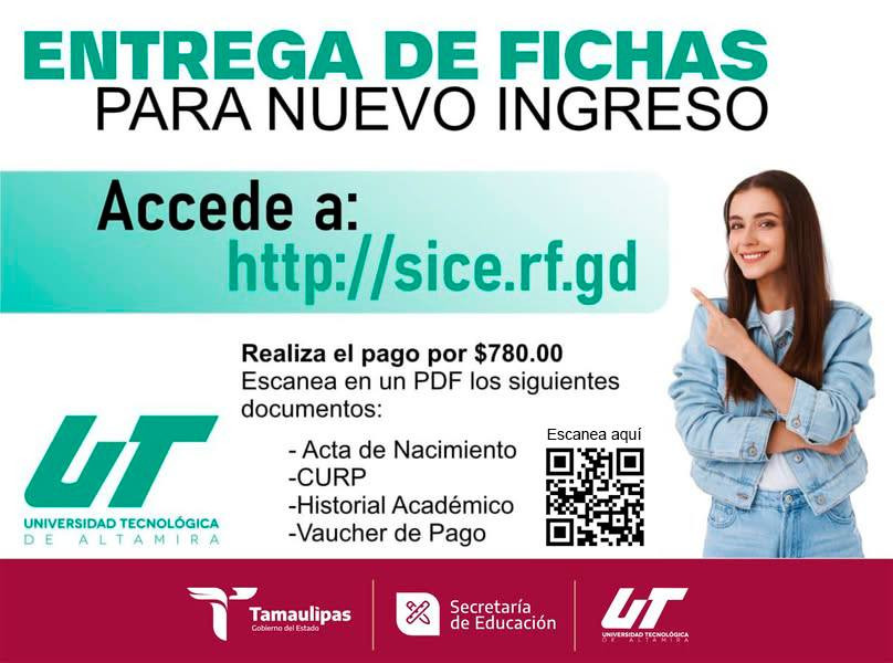 A partir de este día, comenzamos con el registro de aspirantes a ingresar a la Universidad Tecnológica de Altamira. No pierdas tu lugar.