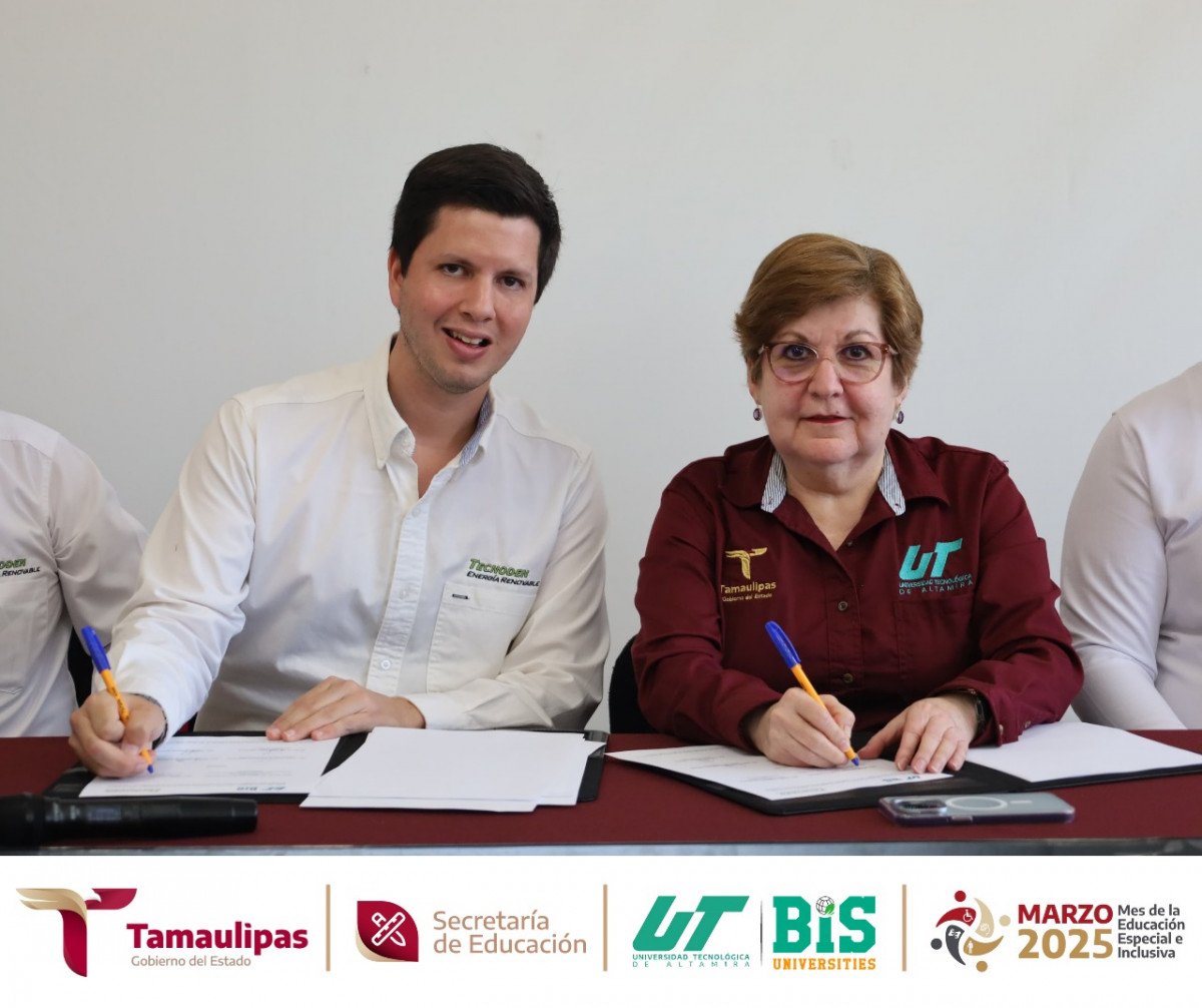 Este 18 de marzo de 2025, a las 12:00 horas, en la Cámara de Gesell, del edificio T. La Universidad Tecnológica de Altamira y la empresa TECNODEN Energía Renovable firmaron un importante convenio de colaboración.