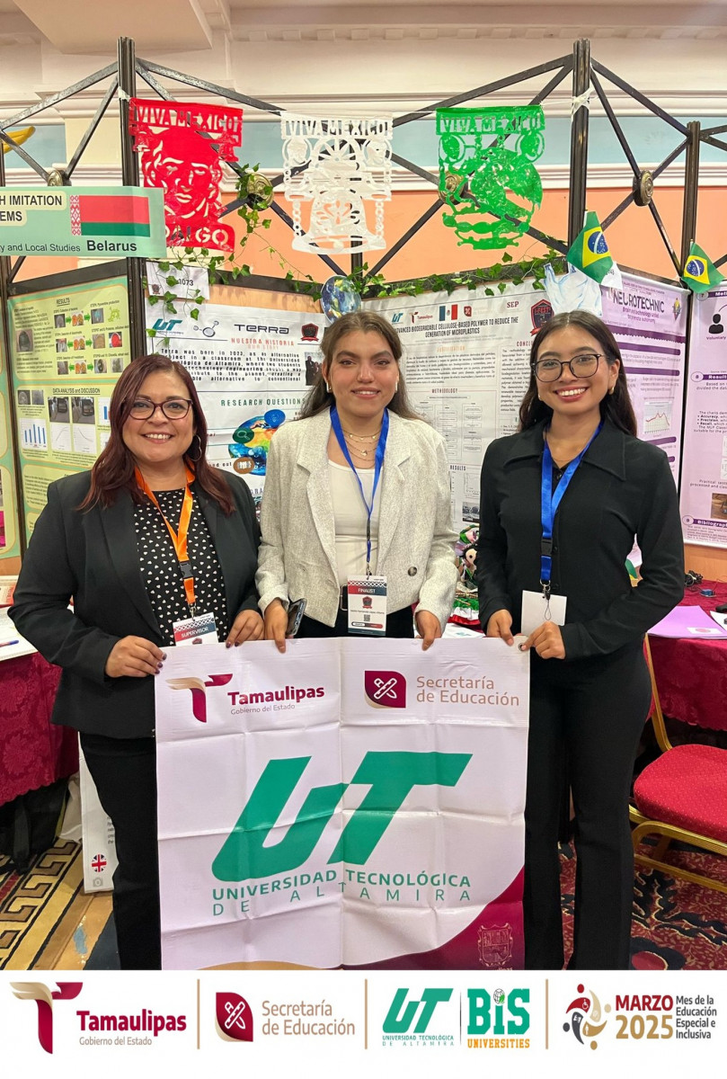 La Universidad Tecnológica de Altamira felicita con gran orgullo a las talentosas estudiantes María Fernanda López Villarreal y Keila Salatiel Alvear Arteaga del Programa Educativo de Ingeniería en Nanotecnología y a su asesora la Dra. Dulce Isaura Vallejo Rendón.