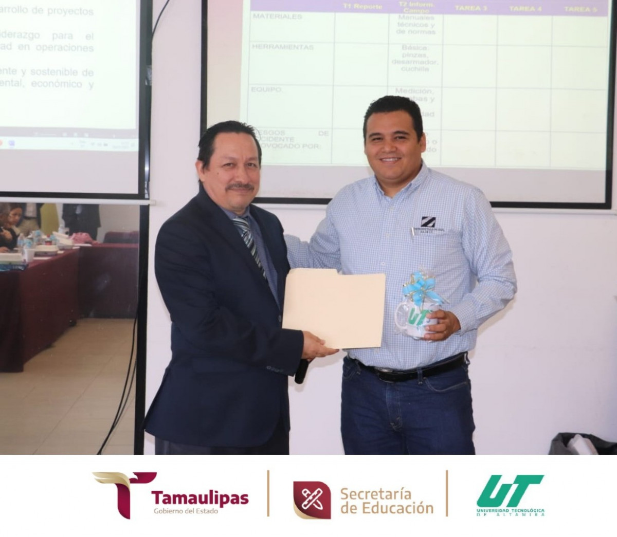 Se contó los representantes de las empresas: Gerente de Electro Técnica Industrial de Tampico, Gerente General de QUALlTY RENEWABLE ENERGY, Gerente Diseño, Construcción y Consultoría Industrial, Director Comercial de TECNODEN S.A. de C.V. Gerente General de Tecnologías Renovables Aplicadas S.A. de C.V. Energy BC Unidad de Inspección Eléctrica, Unidad de Inspección Eléctrica, Gerente General de Productos Industriales del Golfo. S.A de C.V. Delegada Regional FIDE Golfo Centro, Director de Ingeniería y Proyectos, Tecnoden Proyectos Industriales y Servicios Integrales. Además, se contó con la participación de un equipo conformado por profesores del área de Mecatrónica y Energías Renovables, coordinados por la Mtra. Mariana Soledad Centeno Sierra, Directora de las carreras de Mecatrónica y Energías Renovables.