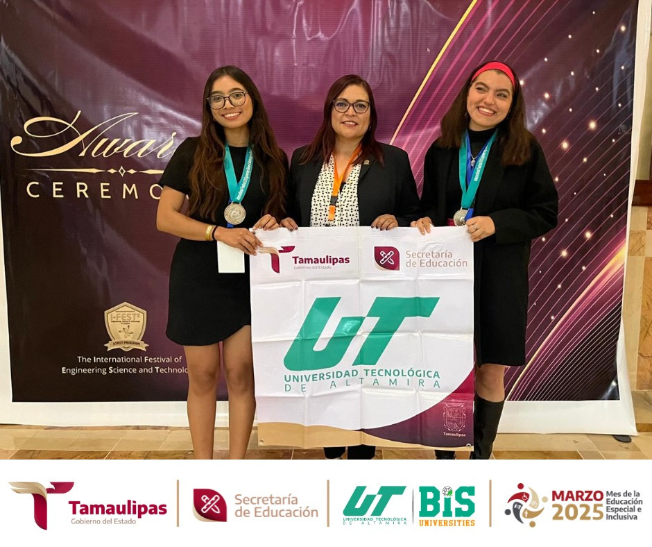 La Universidad Tecnológica de Altamira brilló en la Feria Internacional de Ciencias ATAST-IFEST 2025 al obtener medalla de plata en dicho evento, en la categoría de Medio Ambiente.