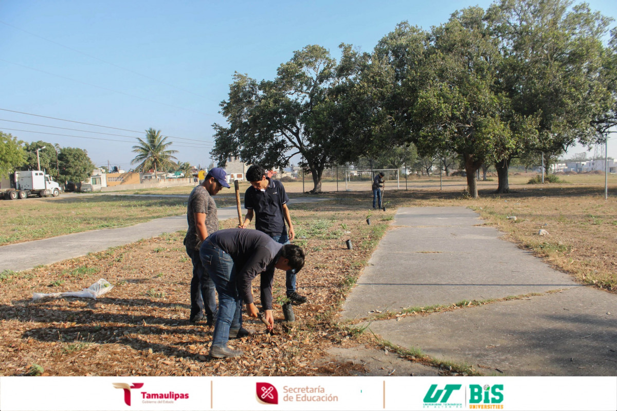 La Universidad Tecnológica de Altamira convocó a sus estudiantes a formar parte de la Jornada Nacional de Tequios por la Paz y Contra las Adicciones. La docente Alejandrina Antonio Antonio, responsable del grupo de estudiantes de Ingeniería Mecatrónica, lideró la actividad en el área verde del Fraccionamiento de San Jacinto en Altamira, Tamaulipas. Con emoción y compromiso, los jóvenes se dedicaron a plantar una gran variedad de plantas con follaje diverso en diferentes puntos de la zona, promoviendo el cuidado al medio ambiente.