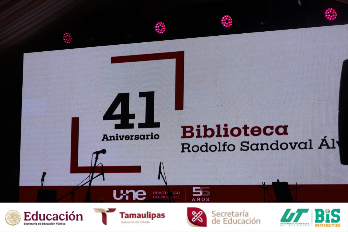 Con orgullo, la Universidad Tecnológica de Altamira participó en la emotiva ceremonia por el 41.º aniversario de la Biblioteca “Rodolfo Sandoval Álvarez, realizada en la explanada de la Universidad del Noreste de Tampico, el pasado martes 20 de mayo a las 19:00 horas.