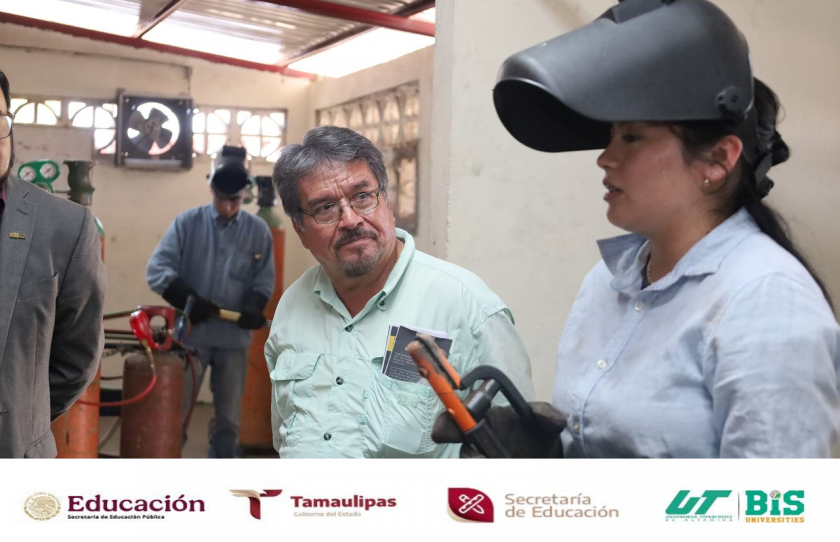 Como parte de la formalización del convenio de colaboración entre la Universidad Tecnológica de Altamira (UTALT) y la CMIC Tamaulipas, se llevó a cabo un recorrido por el Taller de Mantenimiento Industrial y de Soldadura, encabezado por la Dra. Mara Grassiel Acosta González, rectora de UTALT, junto a directivos, estudiantes y distinguidos invitados del sector construcción.