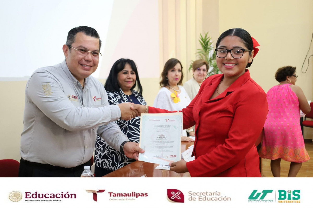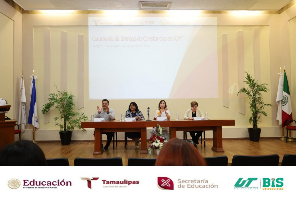 En un acto de gran relevancia para el impulso a la formación profesional en el estado, nuestra Rectora, la Dra. Mara Grassiel Acosta González, participó en la entrega de constancias ITACE–ICAT–UAT, representando con orgullo al Gobernador del Estado, el Dr. Américo Villarreal Anaya, y al Secretario de Educación, Dr. Miguel Ángel Valdez García.