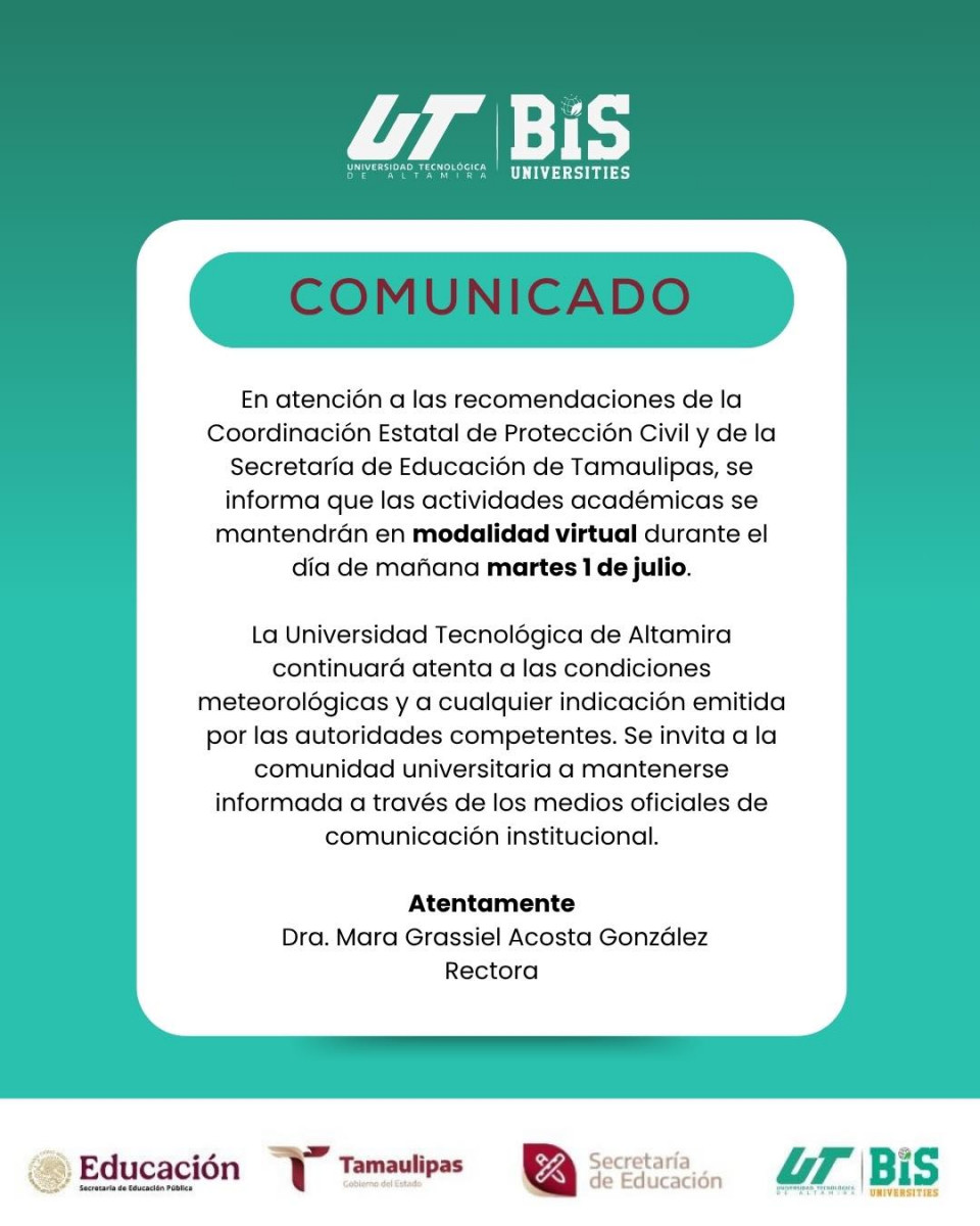 Comunicado Oficial | Se informa que las clases continuarán en modalidad en línea este martes 1 de julio