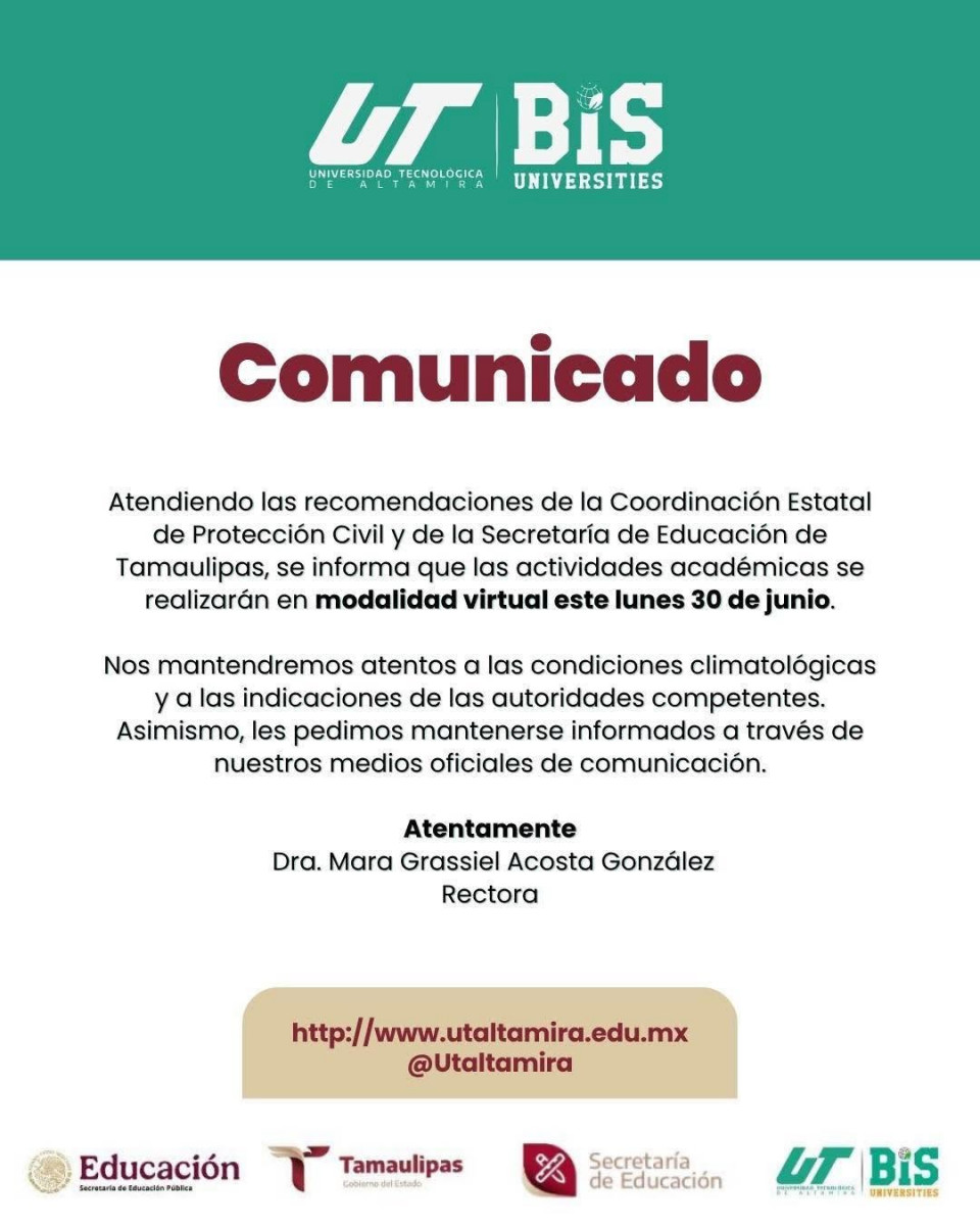 > Comunicado Oficial: Actividades académicas en línea este lunes 30 de junio