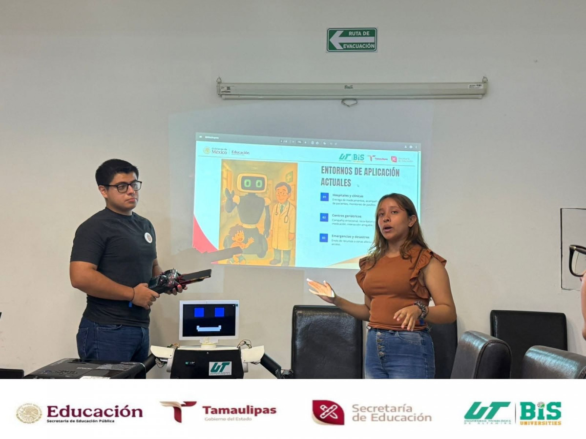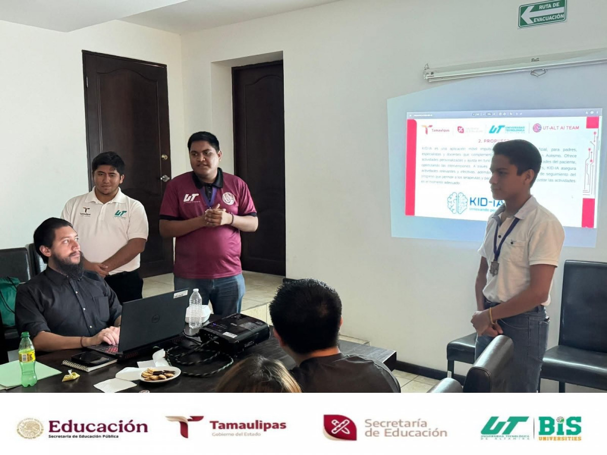 Los equipos KID-IA y BAN-BOT «Dragoncito», integrados por estudiantes de la Universidad Tecnológica de Altamira (UTALT), visitaron las instalaciones del Sistema DIF Altamira, donde presentaron sus proyectos tecnológicos a la C.P. Rosa Irma Luque Pérez, Presidenta del Sistema DIF Altamira, y a la Lic. Dunia Cornejo Belaunzarán, Directora General del organismo.
