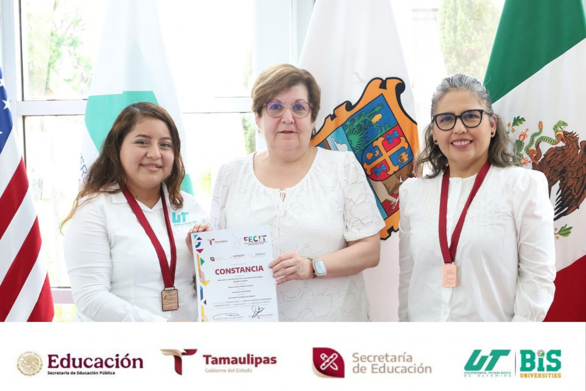La comunidad de la Universidad Tecnológica de Altamira felicita a Marina Yazmín Violante Francisco, estudiante de TSU en Química Área Industrial (5A), por obtener el 3.er Lugar en la Feria de Ciencias e Ingenierías Tamaulipas 2025