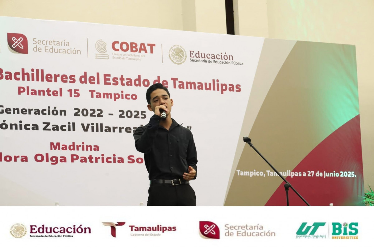 La Universidad Tecnológica de Altamira expresa su reconocimiento al COBAT Plantel 15 Tampico por la emotiva ceremonia de graduación de la generación 2022–2025, celebrada este 27 de junio de 2025 en el Hotel Posada de Tampico.