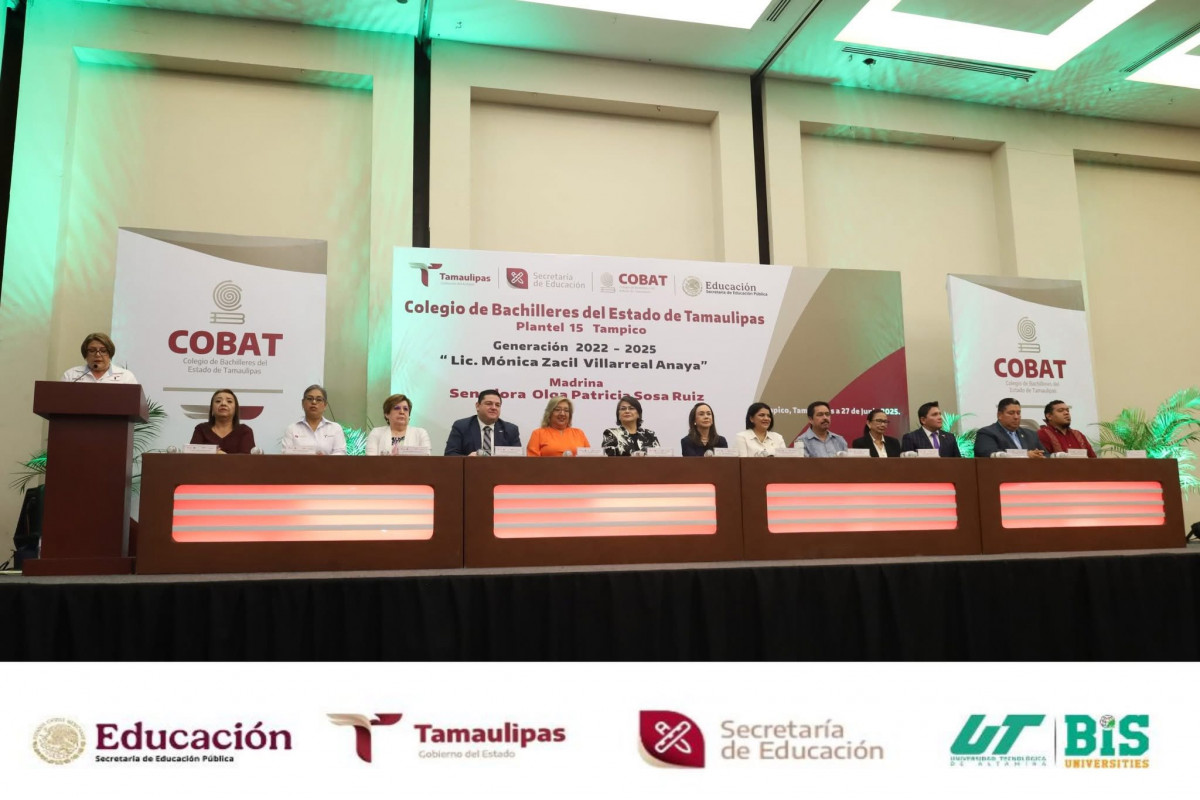 La Universidad Tecnológica de Altamira expresa su reconocimiento al COBAT Plantel 15 Tampico por la emotiva ceremonia de graduación de la generación 2022–2025, celebrada este 27 de junio de 2025 en el Hotel Posada de Tampico.