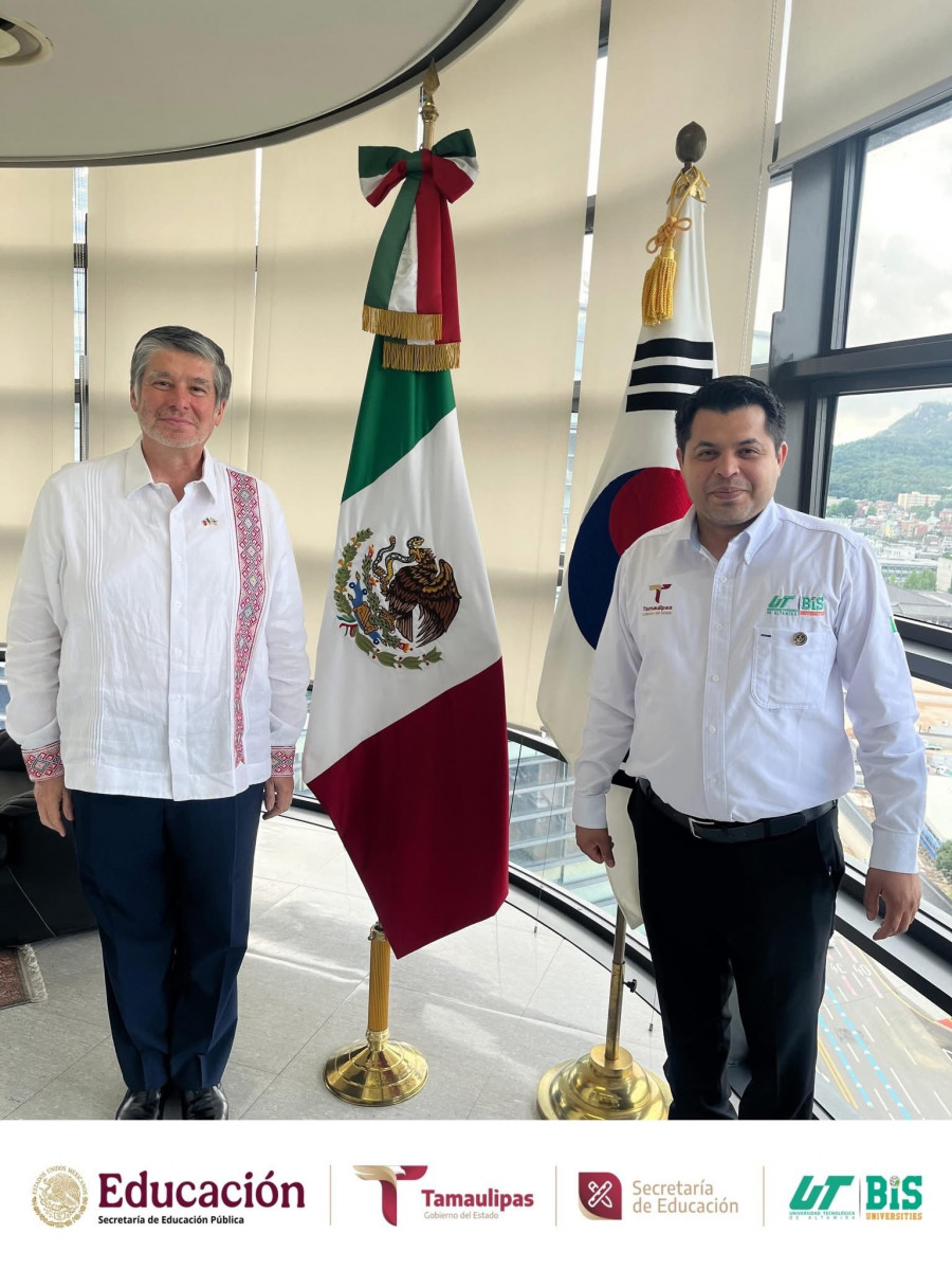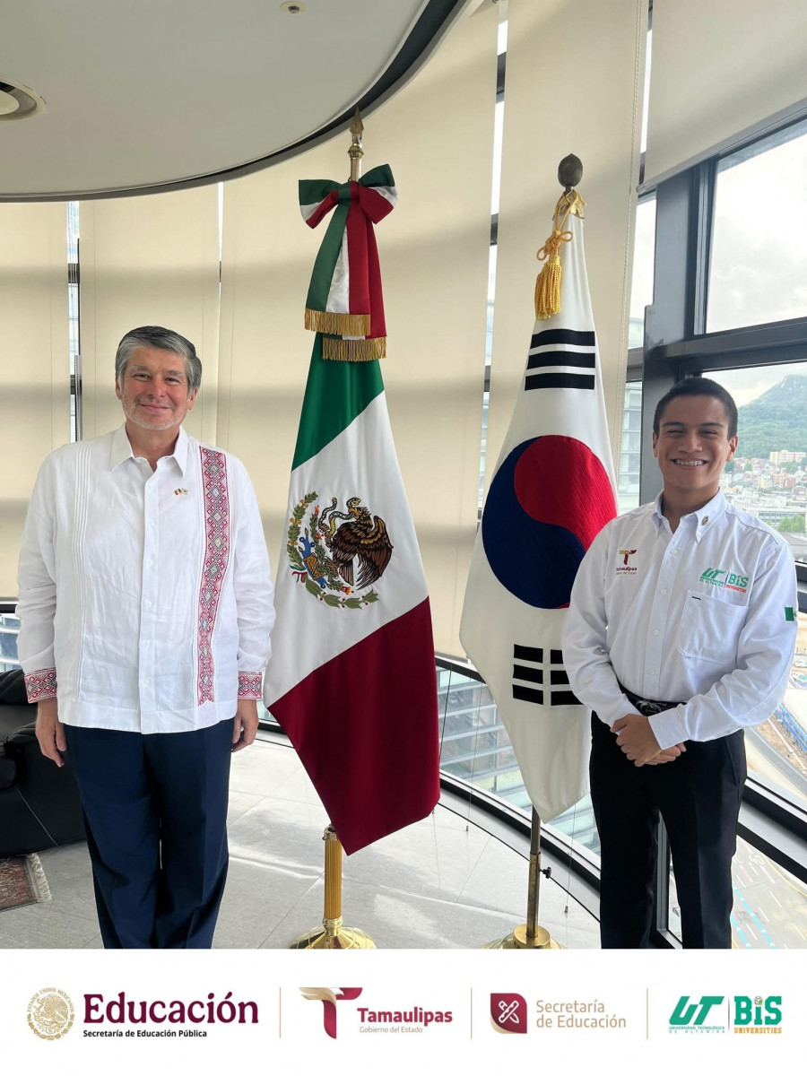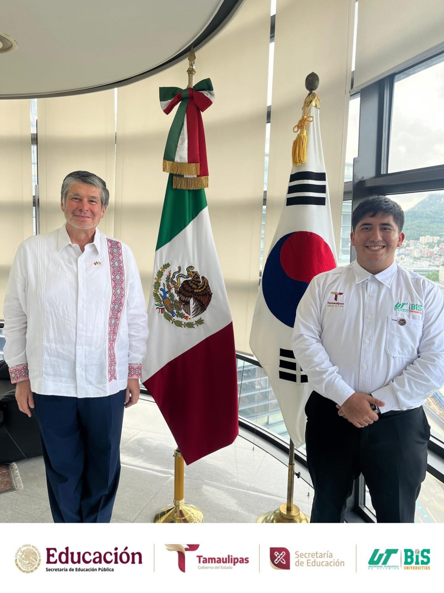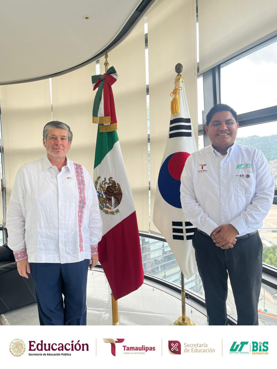 Como parte de su agenda oficial en Corea del Sur, estudiantes del programa académico de Mecatrónica de la Universidad Tecnológica de Altamira (UTALT) sostuvieron un encuentro institucional con el Embajador de México, Lic. Carlos Peñafiel Soto, previo a su participación en el World Invention Creativity Olympic (WICO) 2025.