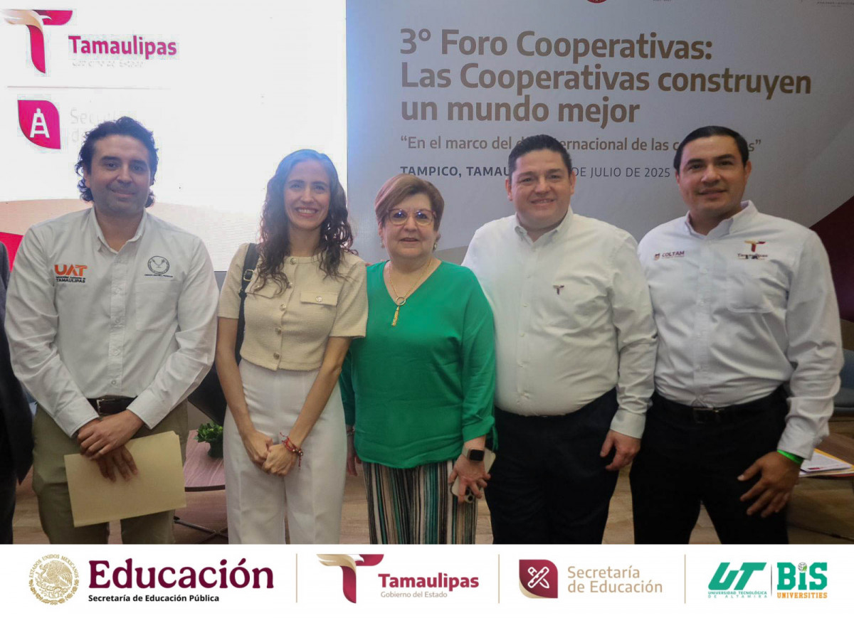 La Dra. Mara Grassiel Acosta González, Rectora de la Universidad Tecnológica de Altamira, asistió al 3er. Foro de Cooperativas, celebrado este 18 de julio de 2025 en el Aula Magna Herman Harris Fleishman de la Universidad Autónoma de Tamaulipas, Campus Tampico.