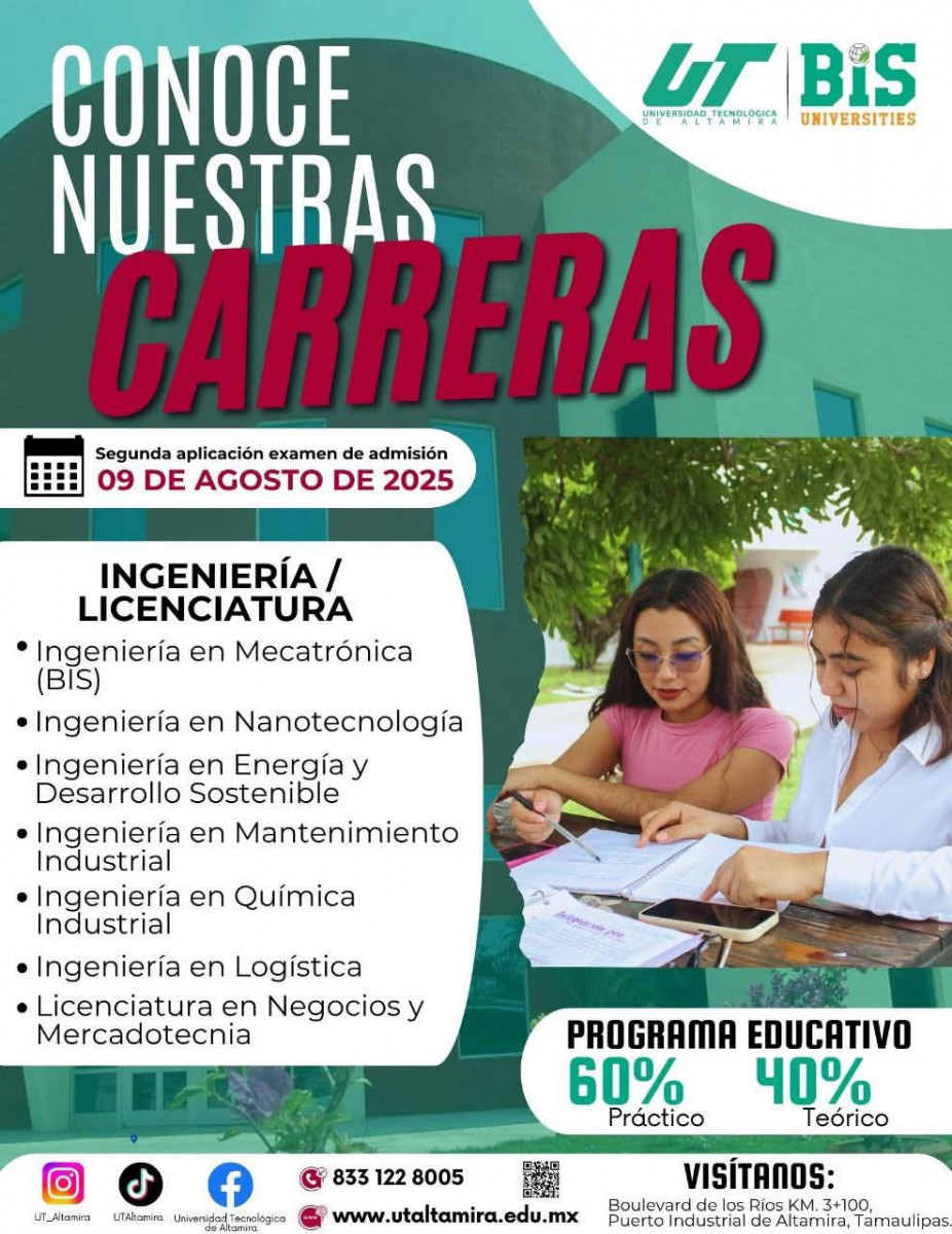 La Universidad Tecnológica de Altamira extiende la fecha límite para entrega de fichas de nuevo ingreso hasta el 03 de agosto de 2025.