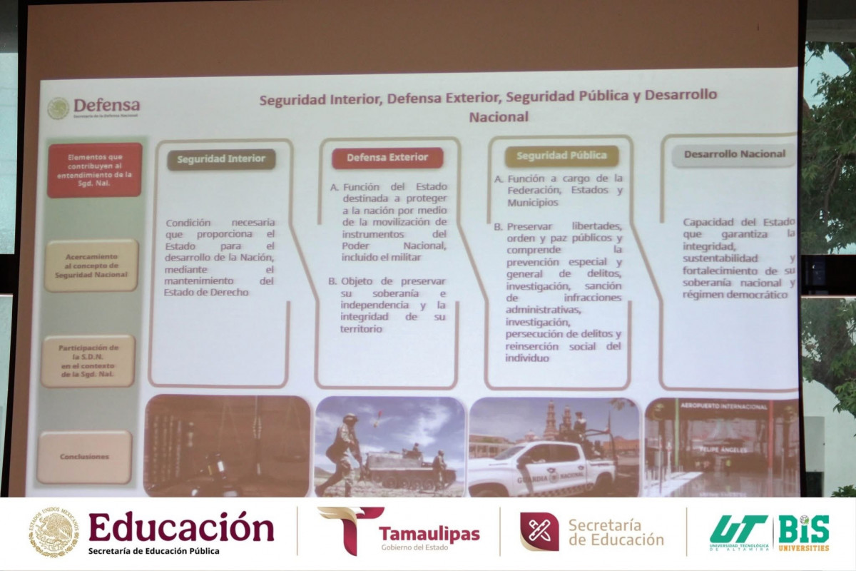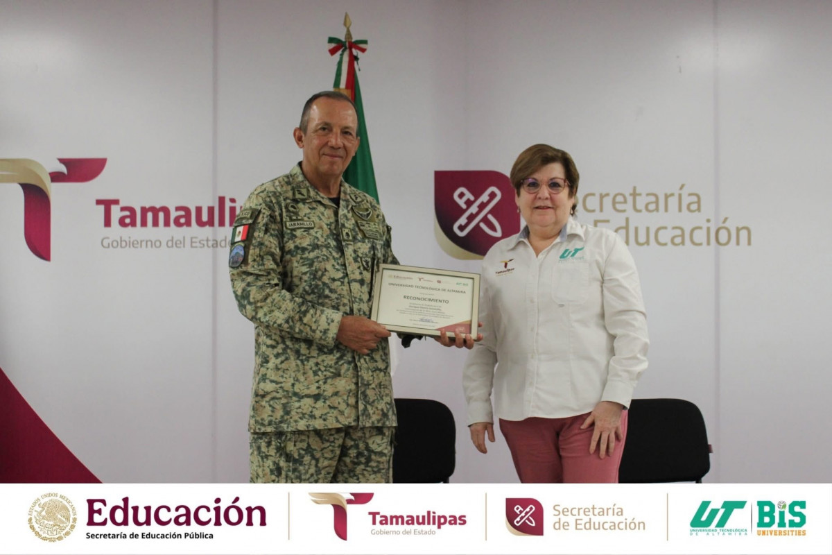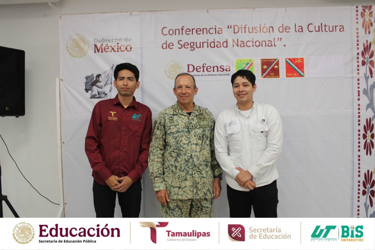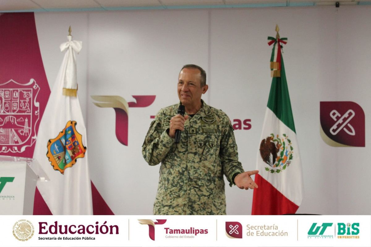 La Universidad Tecnológica de Altamira tuvo el honor de recibir al General de Brigada D.E.M. Enrique García Jaramillo, Comandante de la 48/a. Zona Militar, en el marco de la conferencia «Difusión de la Cultura de Seguridad Nacional», dirigida a estudiantes, docentes y directivos.